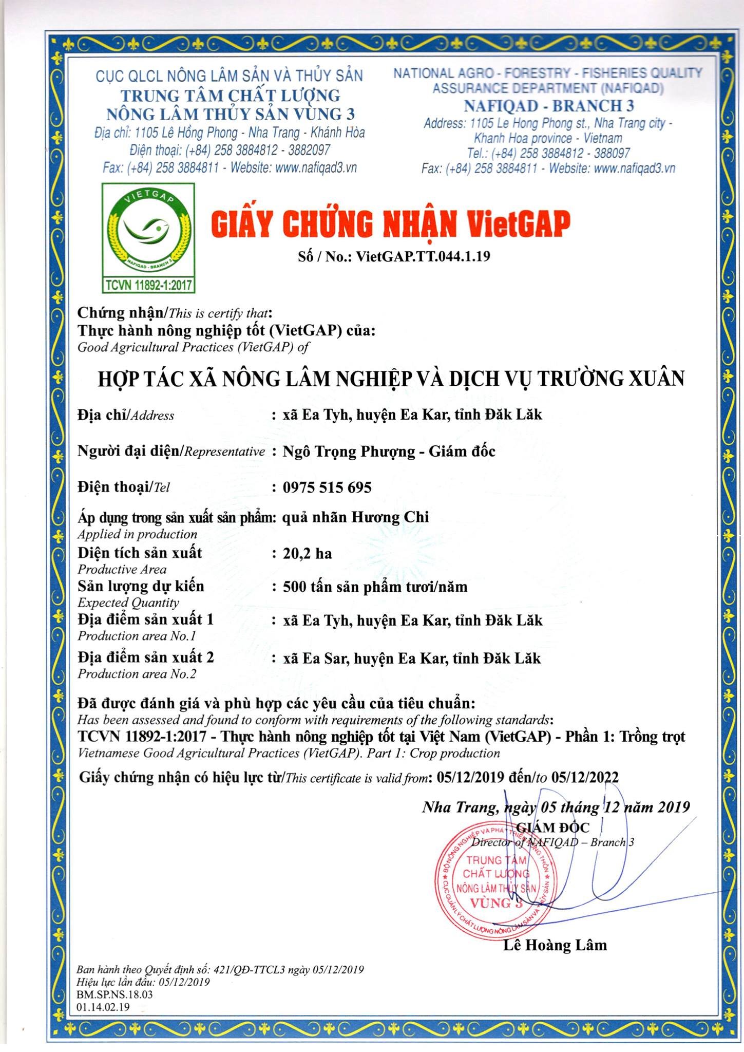 - Chứng nhận Cơ sở sản xuất Nhãn Viet Gap