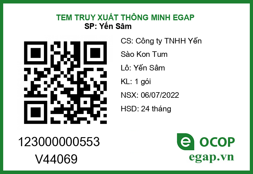 | 1 | Giấy chứng nhận - Giấy chứng nhận OCOP 4 Sao Nước Yến Sâm |