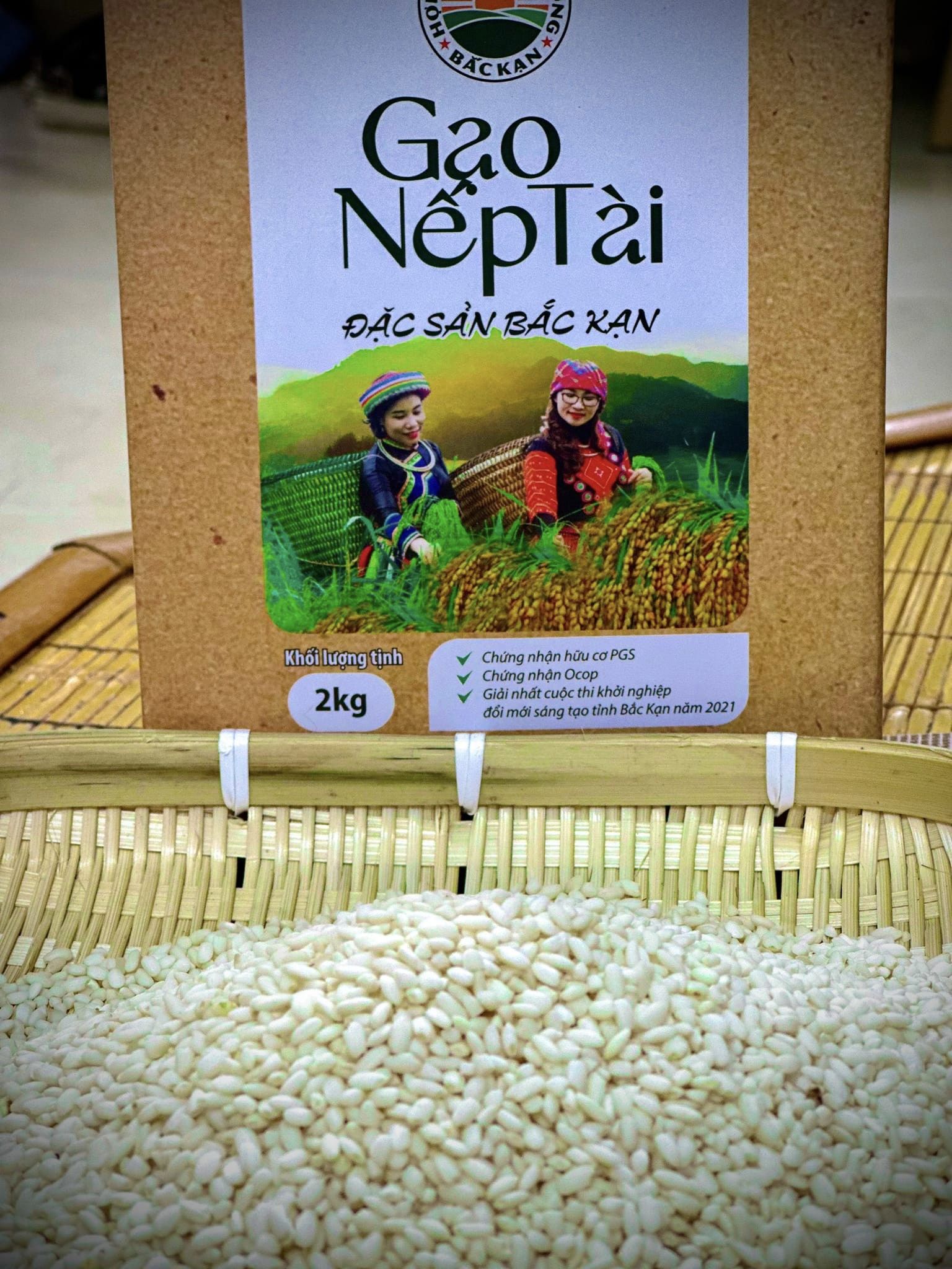 | 1 | Thành phẩm - Tuyển chọn Gạo Nếp Tài xát dối (để lại 50% cám), đặc sản địa phương Bản Phiềng Phàng, Yến Dương, Ba Bể, Bắc Cạn, đạt tiêu chuẩn hữu cơ PGS, OCOP, xác nhận chất lượng Tem truy xuất eGap làm nguyên liệu |