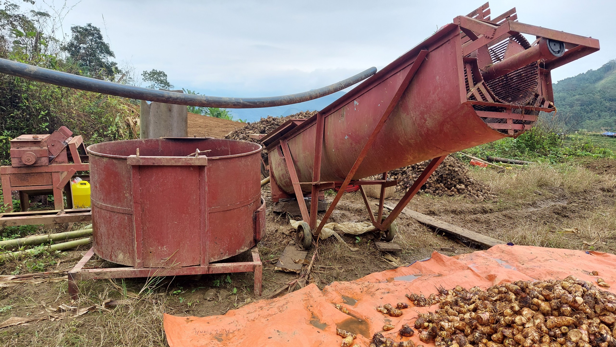 | 11 | Vệ sinh, xử lý nguyên liệu - Vệ sinh, xử lý nguyên liệu sau thu hoạch: củ dong riềng khi đủ độ già sẽ được thu hoạch, rửa sạch đất cát, cắt bỏ rễ và các phần bị hỏng sau đó đưa vào máy nghiền. |