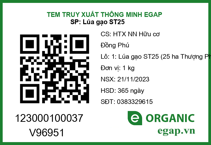 | 15 | Tem QR code eGAP - Tạo Tem Qr eGap cho Lô thóc ST25 vụ mùa Thượng Phúc 2023 |