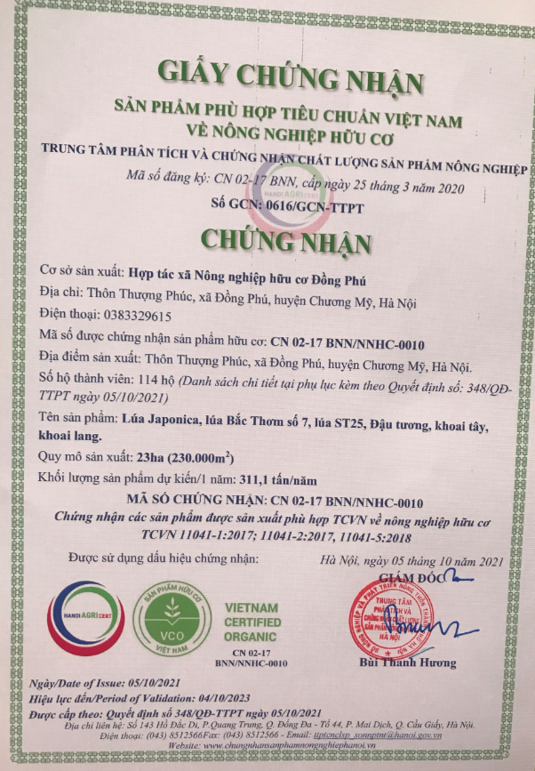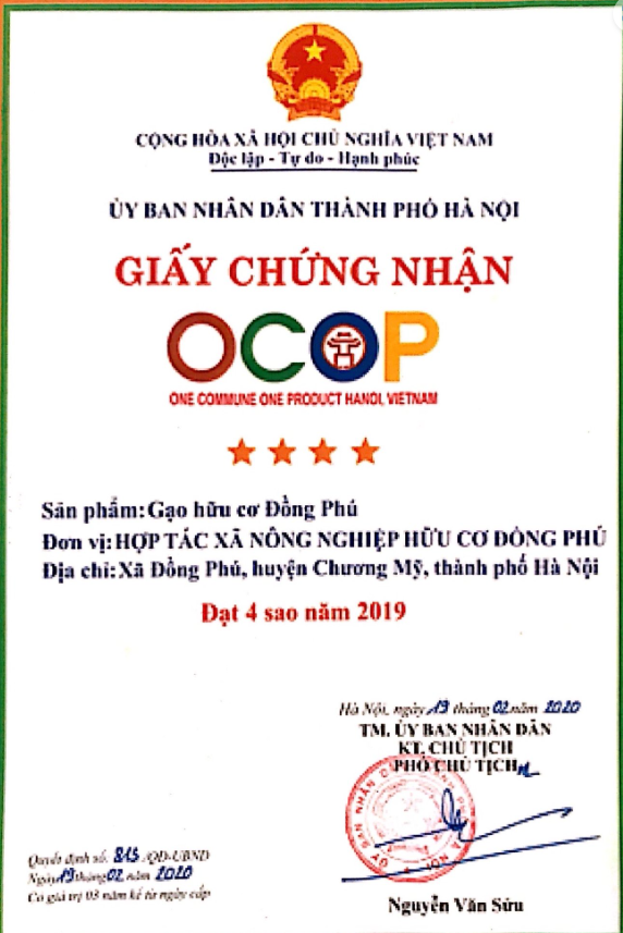 | 1 | Chứng chận tiêu chuẩn - Giấy chứng nhận Hữu cơ, OCOP 4 sao |