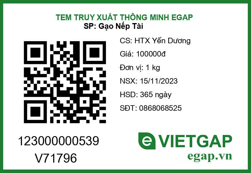 | 21 | Tem QR code eGAP - Xuất tem Qr Code cho Lô Gạo xuất ngày 20/10/2023 |