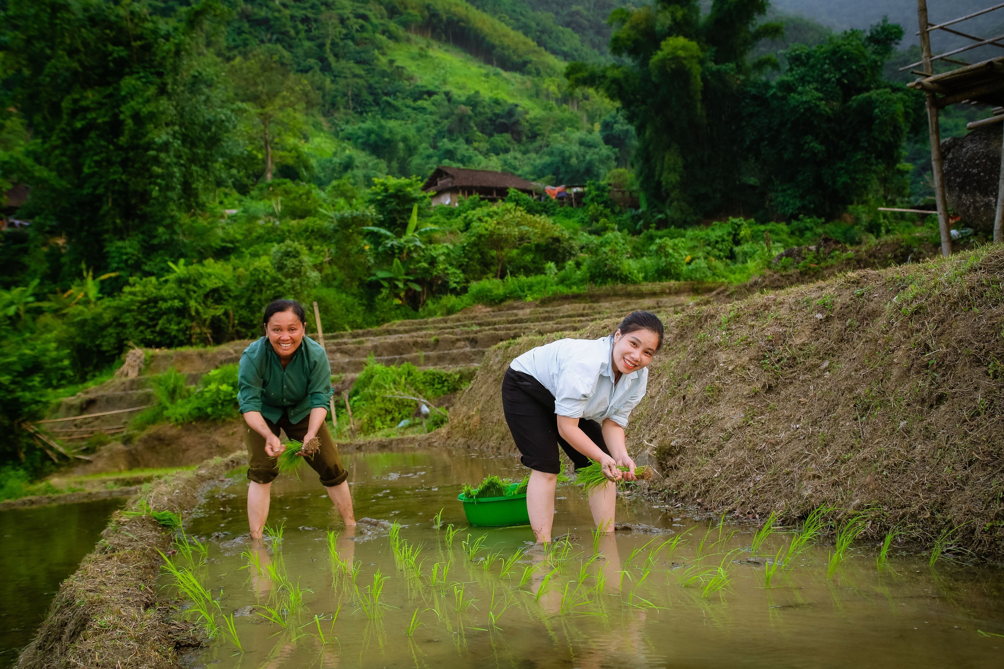 | 6 | Bón Lót - Bón lót phân chuồng ủ hoai mục và phân Lân nung chảy Văn Điển. Ủ nước trong ruộng 10-20 ngày. Tàn dư thực vật và gốc rạ sau khi thu hoạch được giữ lại tại ruộng và dầm vào đất trong quá trình làm đất. Vì sử dụng giống lúa bản địa thích nghi với điều kiện khí hậu và thổ nhưỡng địa phương, đặc biệt áp dụng theo phương pháp canh tác hữu cơ nên chỉ bón lót phân 1 lần vào giai đoạn làm đất với liều lượng 150 - 200 kg phân chuồng hoai mục; 50 kg phân lân nung chảy Văn Điển/1.000 m2. |