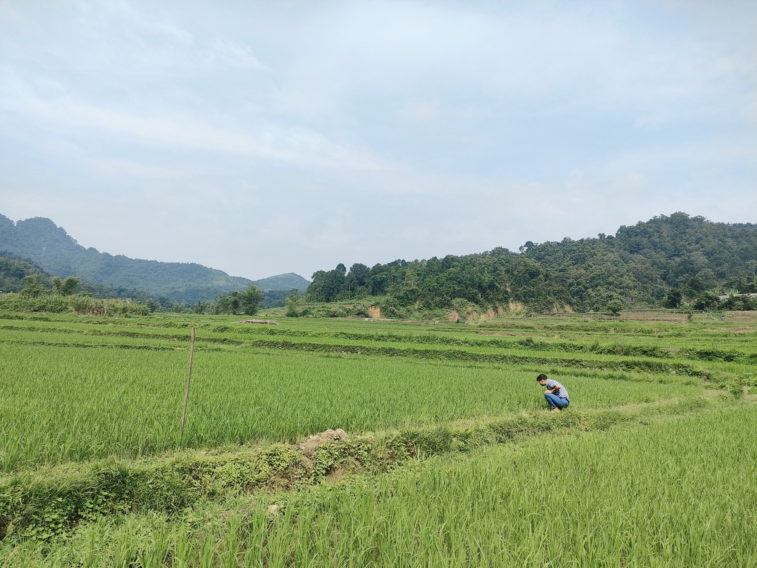 | 13 | Thao tác kỹ thuật - Làm cỏ lúa thủ công, giữ nước trong ruộng 3 - 5cm. Cây đang bắt đầu đẻ nhánh và phát triển tốt, cỏ dại xuất hiện nhiều. Tiến hành dọn bớt cỏ. |
