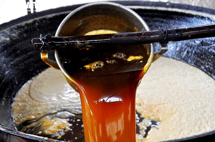| 4 | Trộn nguyên liệu - Trộn đều các loại nguyên liệu vào nhau: Mật mía, lạc, mạch nha, gừng |