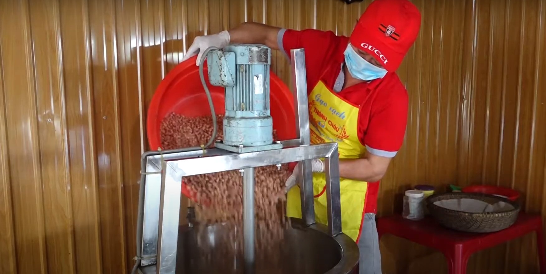 | 3 | Kiểm tra chất lượng nguyên liệu đầu vào - Chọn Hạt lạc to tròn, bấm món tay vào hạt có cảm giác chắc, mẩy. Vỏ hạt đậu phộng có màu sáng. Hạt đều, không bị lẫn các hạt lép, hư thối. Không chọn hạt đậu đã bị mốc, hoặc xuất hiện các màu sắc lạ. |