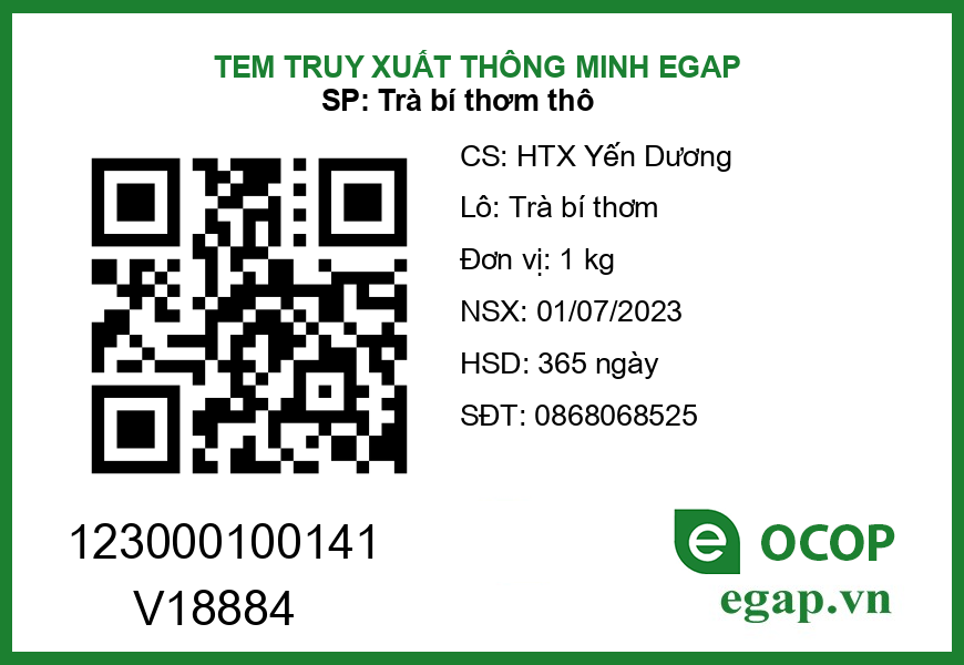 | 1 | Tem Qr Code eGap - Tem Qr code bí thơm thô HTX Yến Dương |