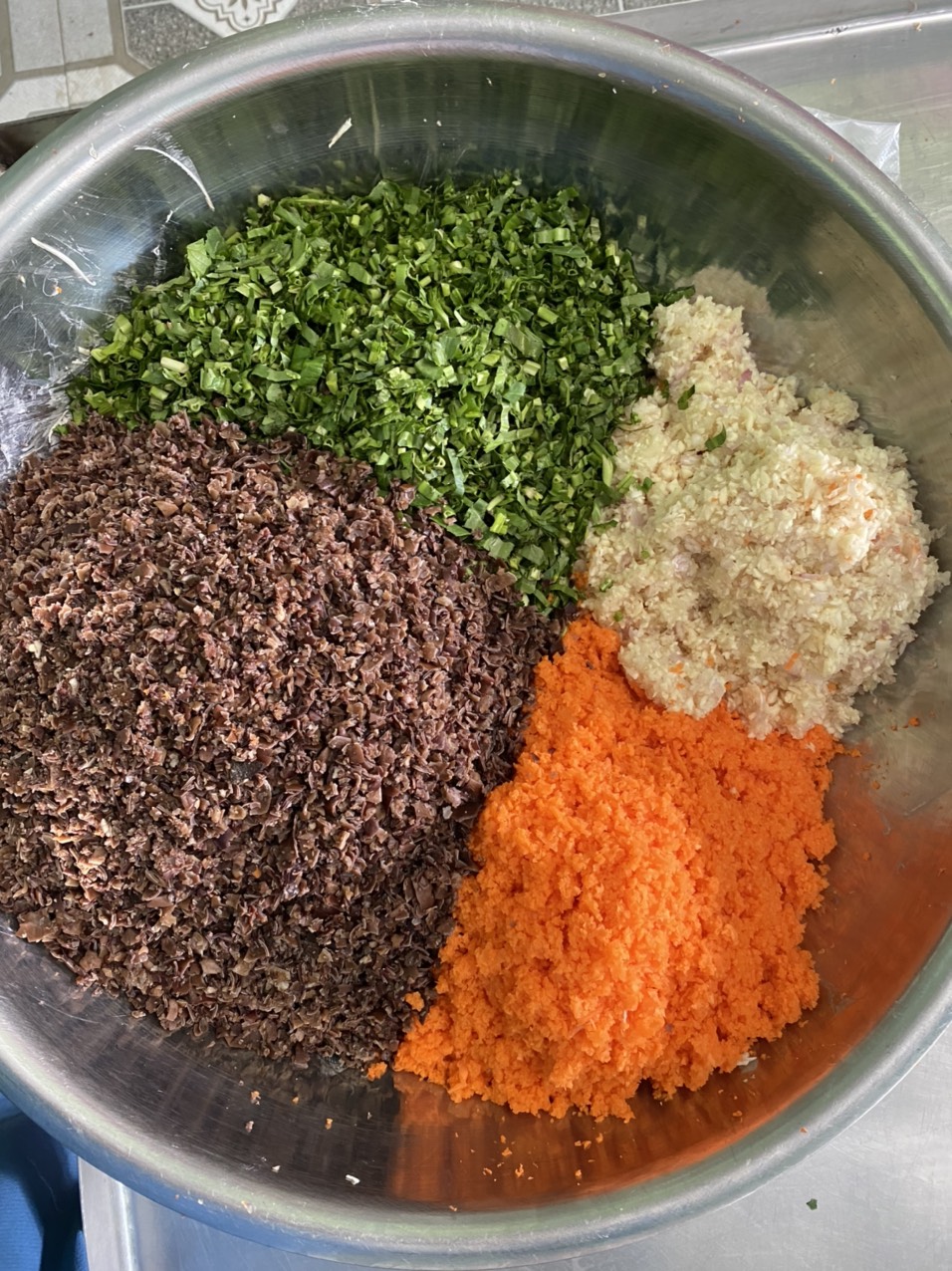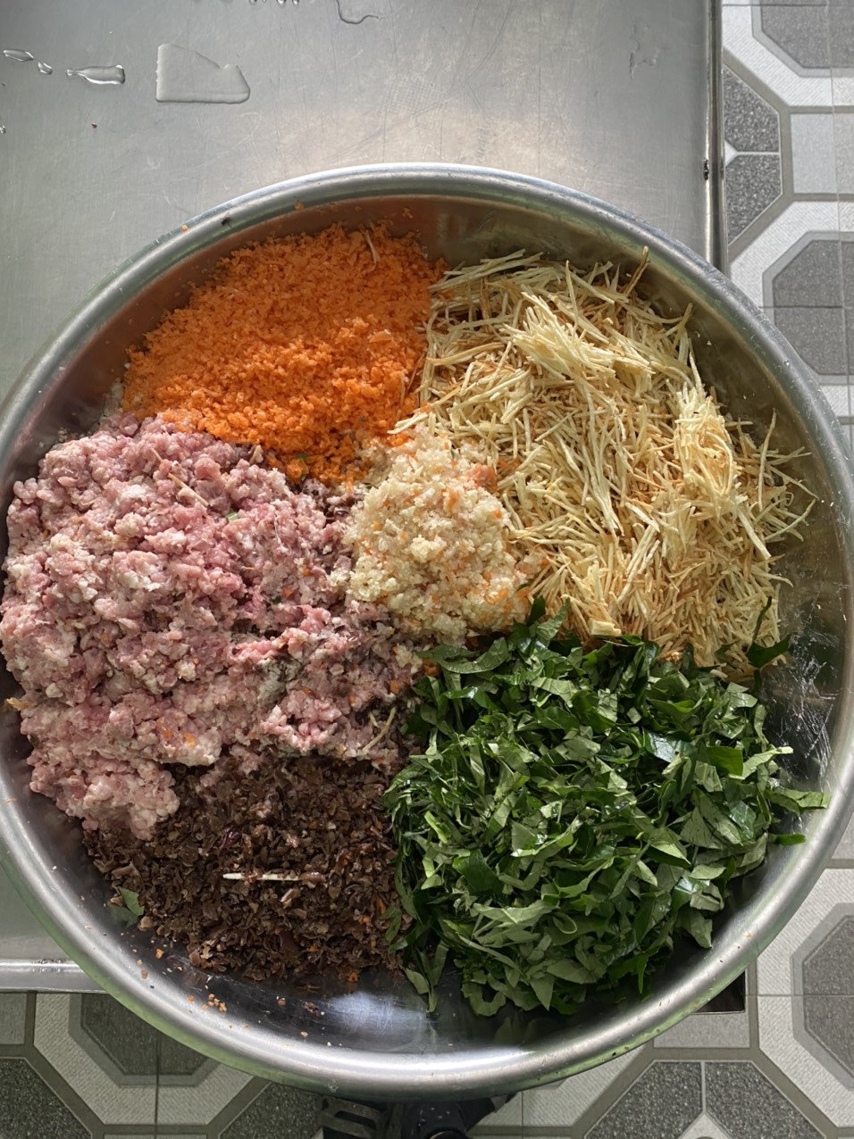 | 6 | Trộn nguyên liệu - Nguyên liệu Tôm sau khi thu mua về sẽ được rửa sạch, bóc bỏ và cấp đông. Nguyên liệu thịt sẽ được rửa sạch và xay thô, các loại nguyên liệu rau củ sẽ được rửa sạch và xay nhỏ và trộn đều với nhau |
