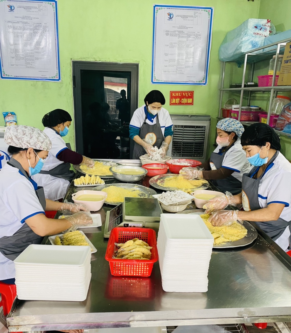 | 6 | Trộn nguyên liệu - Trộn bột ướt để nhúng tôm vào. Bột ướt được pha với nước sạch khuấy đều. |