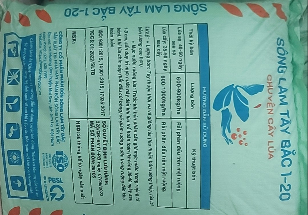 - bón thúc đòng sau 50 ngày cấy cho toàn bộ diện tích bằng phân chuyên lúa 3 của công ty sông lam tây bắc
