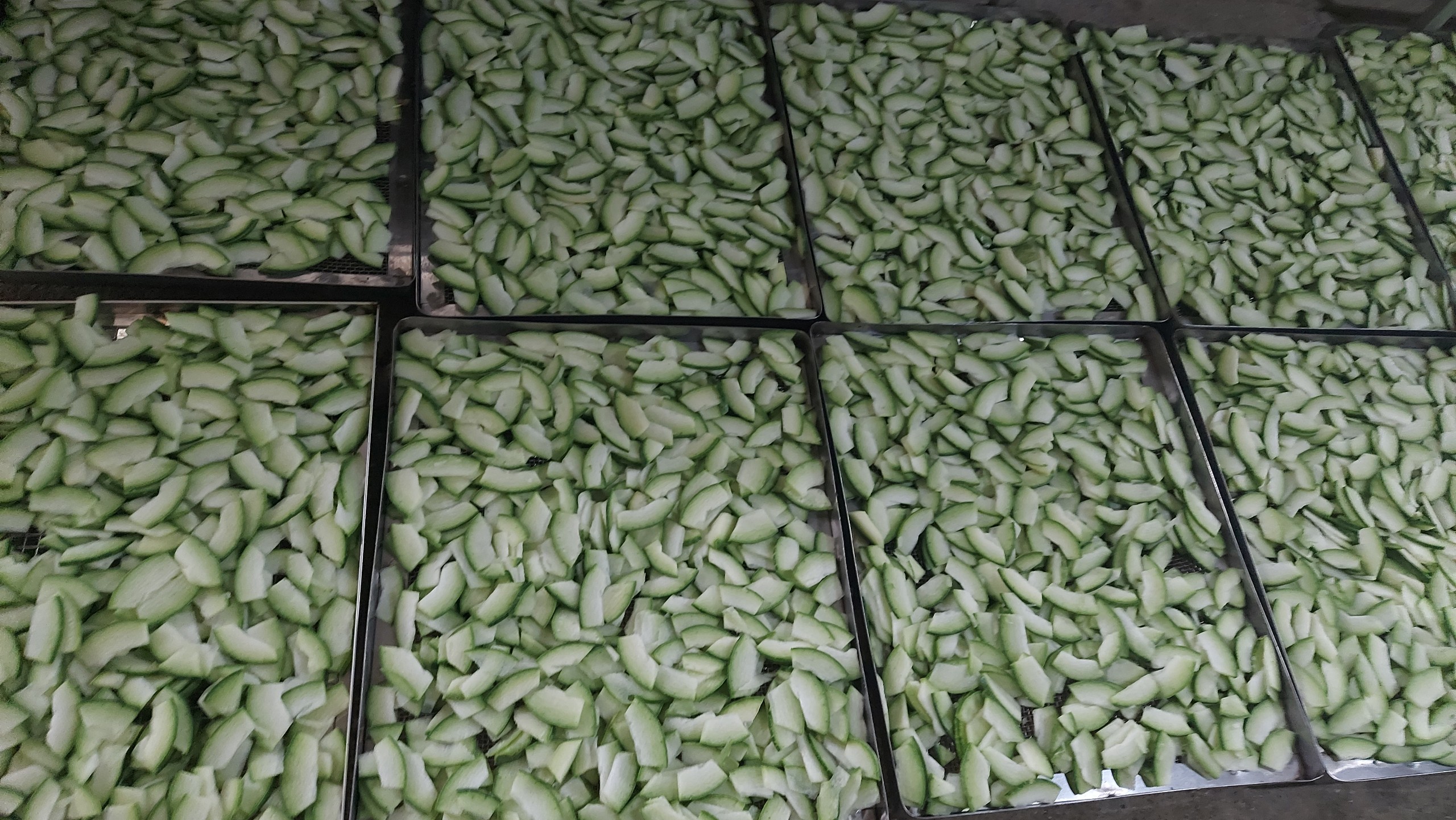 | 6 | Chế biến nguyên liệu - Dùng máy cắt công nghiệp, cắt bí thành các lát mỏng đều nhau để thuận tiện cho việc sấy và chất lượng mẫu mã đồng đều, đẹp mắt |