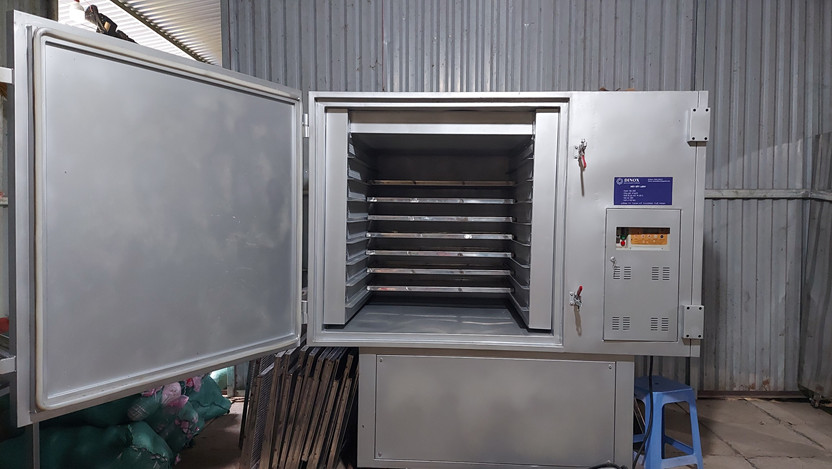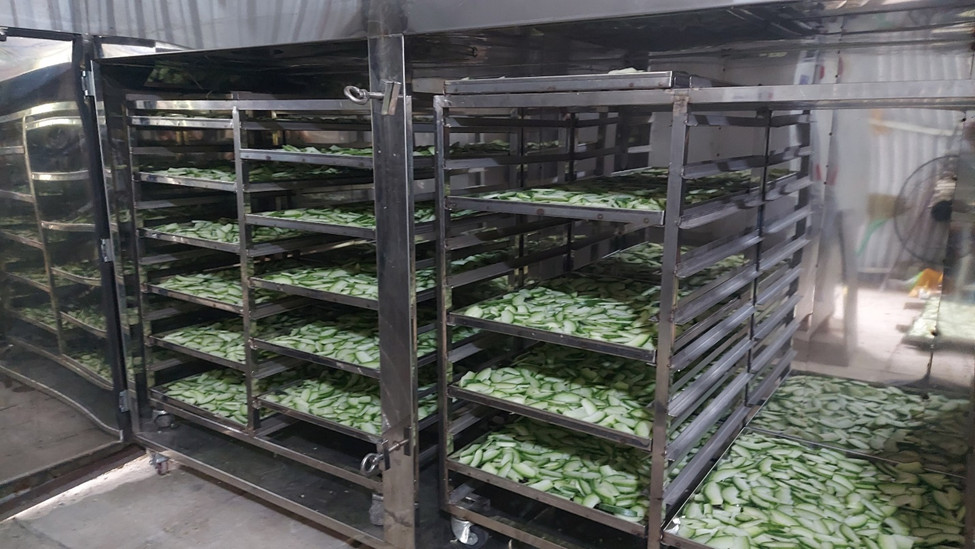 | 7 | Chế biến nguyên liệu - Cho bí đã cắt nhỏ vào máy sấy công nghiệp, chỉnh nhiệt độ thích hợp |