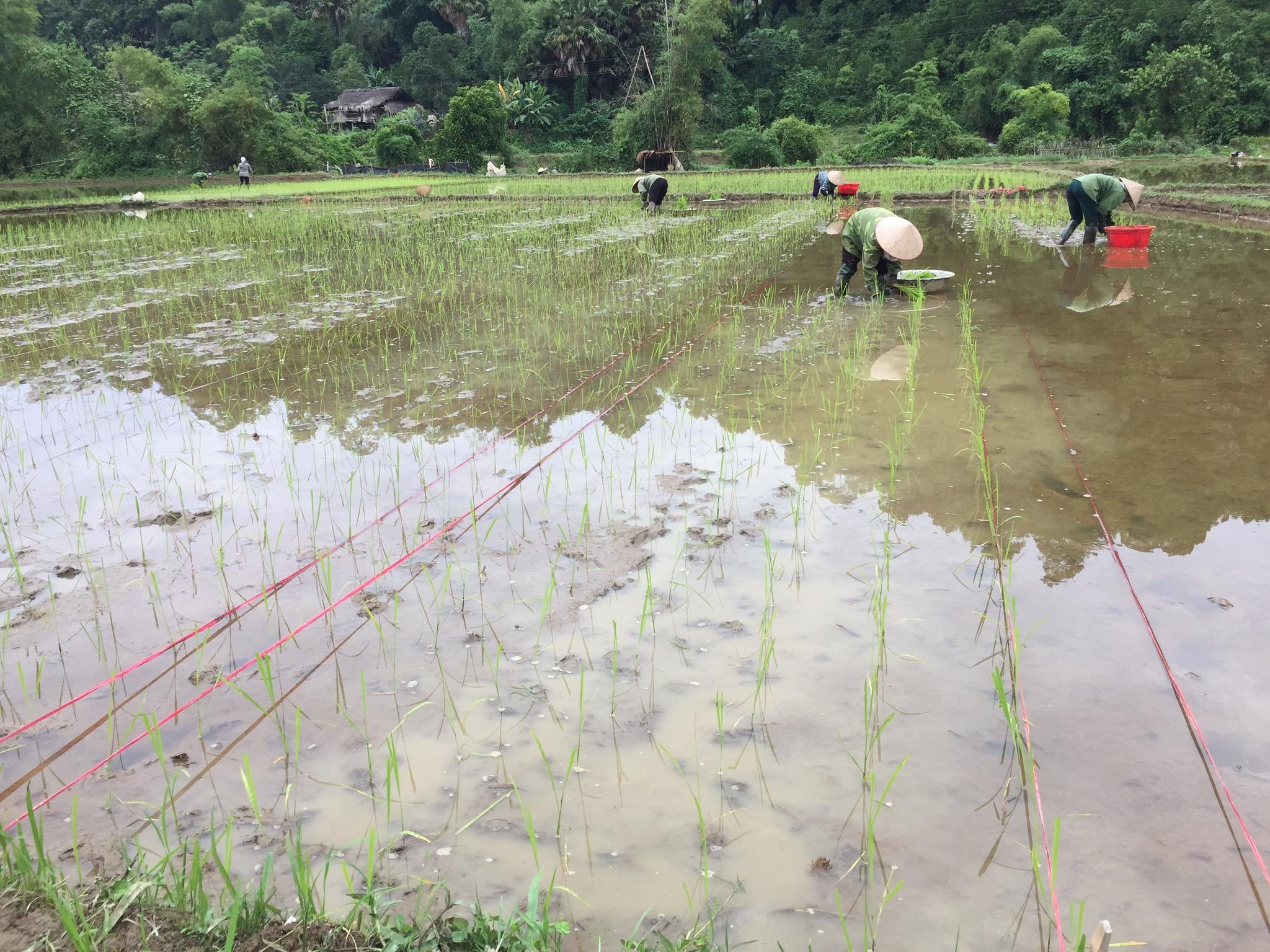 - Cấy lúa. Mật độ: 20 khóm/m2, khoảng cách: 20 cm x 25 cm. Cấy 1- 3 dảnh/khóm; cấy nông tay