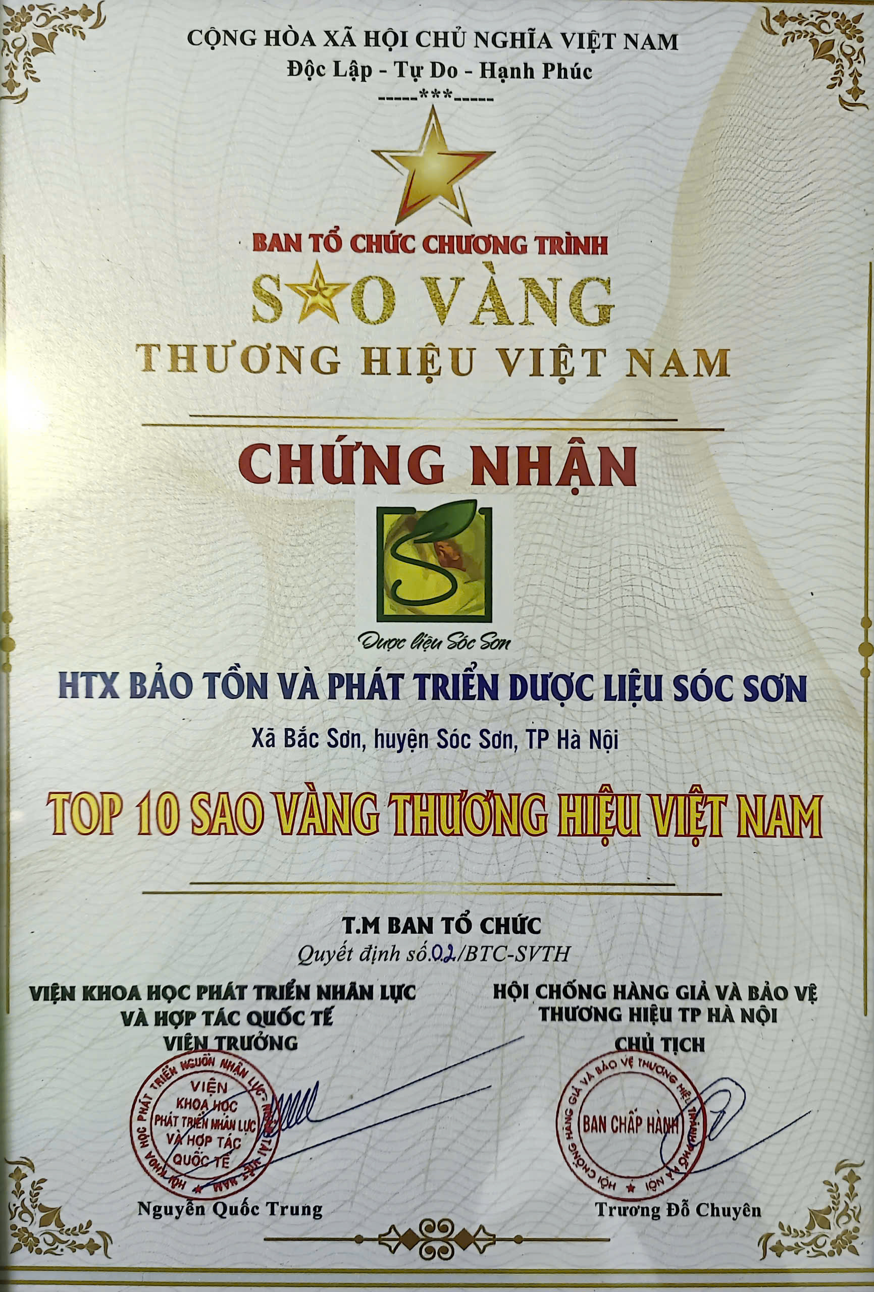 | 3 | Chứng chận tiêu chuẩn - HTX Bảo tồn và Phát triển Dược liệu Sóc Sơn đạt chứng nhận "Sản phẩm phù hợp tiêu chuẩn Việt Nam về nông nghiệp hữu cơ" của Sở Nông nghiệp & PTNT Hà Nội, trong đó có sản phẩm từ cây Khôi Tía. |