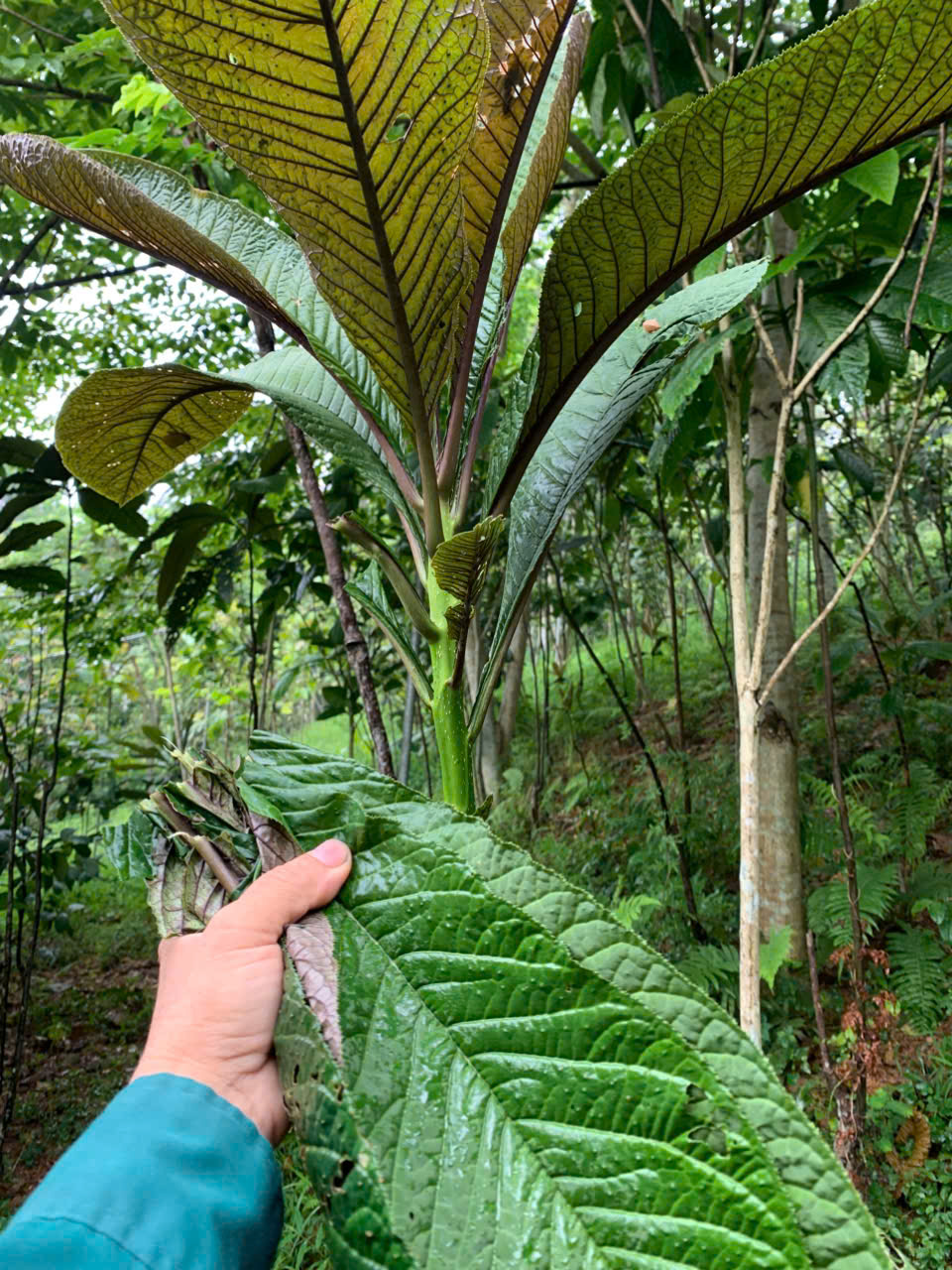 | 11 | Kiểm tra đồng ruộng - Thăm vườn: hình ảnh cây khôi tía được trồng xen với cây trà hoa vàng. Cây khỏe mạnh, phiến lá to và không bị sâu bệnh đang chuẩn đến thời điểm thu hoạch lá. |