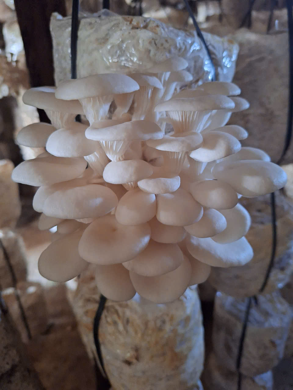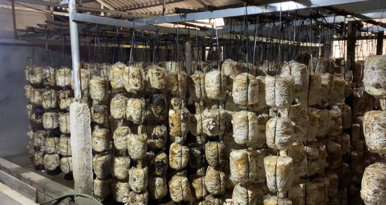 - Treo bịch và chăm sóc bịch nấm, tưới nước để phôi có đủ độ ẩm, để đạt được chất lượng và số lượng cao nhất khi thu hoạch