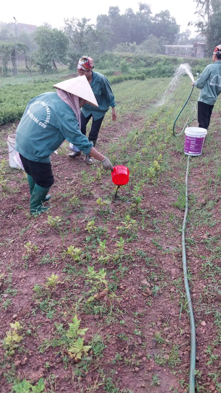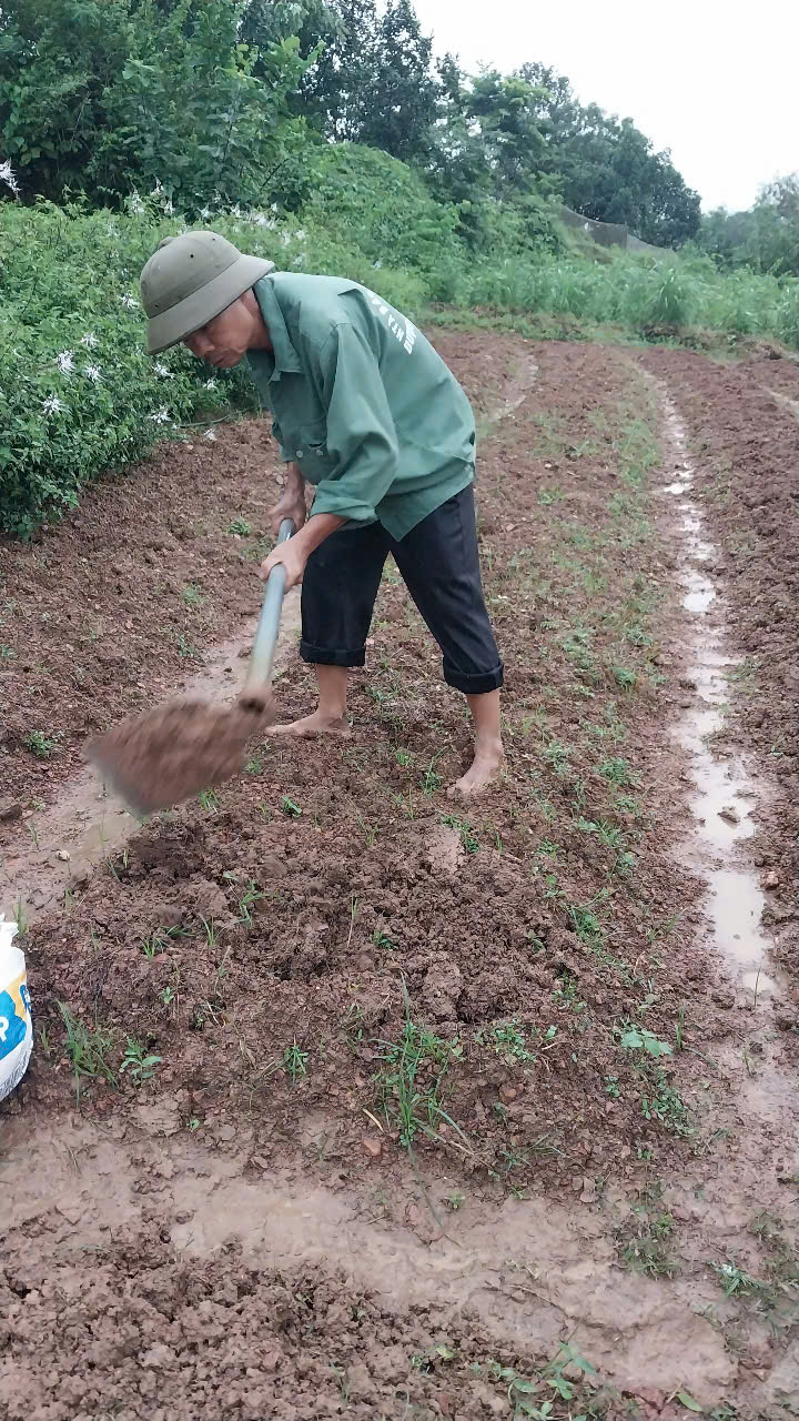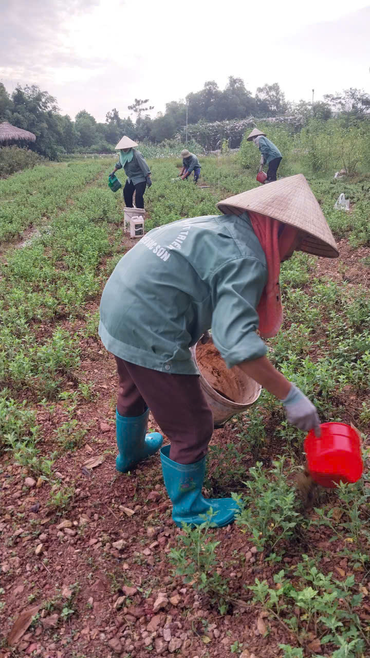 - Tiến hành làm cỏ cho cây cúc chi. Thời tiết mưa, đất ẩm thuận tiện cho việc làm cỏ.