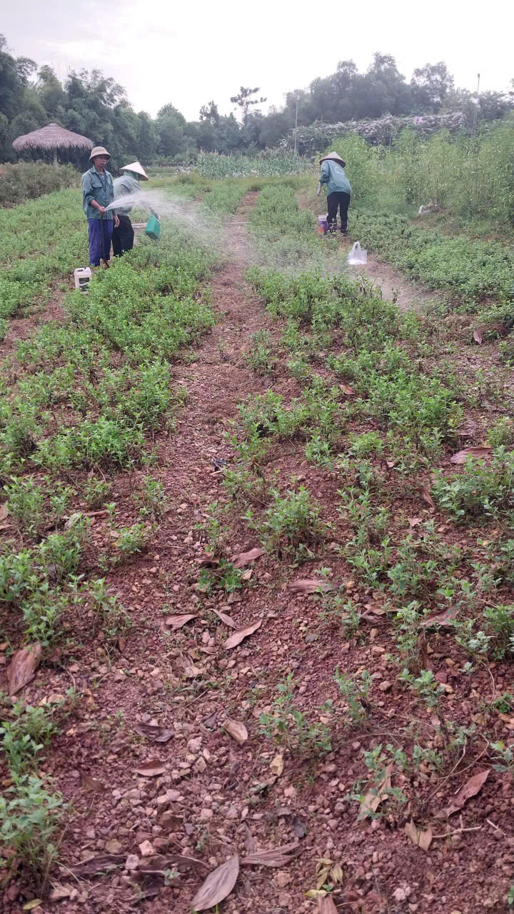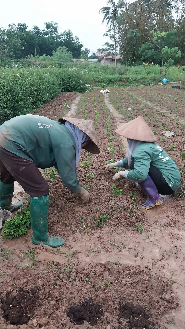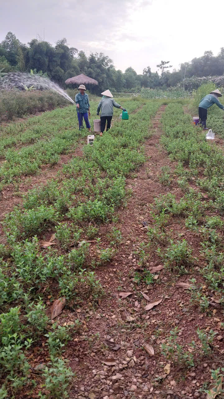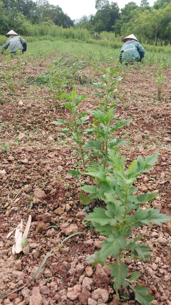 - Tiến hành xuống giống trồng cây cúc chi. được bón lót bằng phân chuồng ủ hoai mục, trồng khoảng cách cây x cây 25 - 30 cm. Lựa chọn thời điểm xuống giống có mưa, đất đủ ẩm, hạn chế được công tưới.