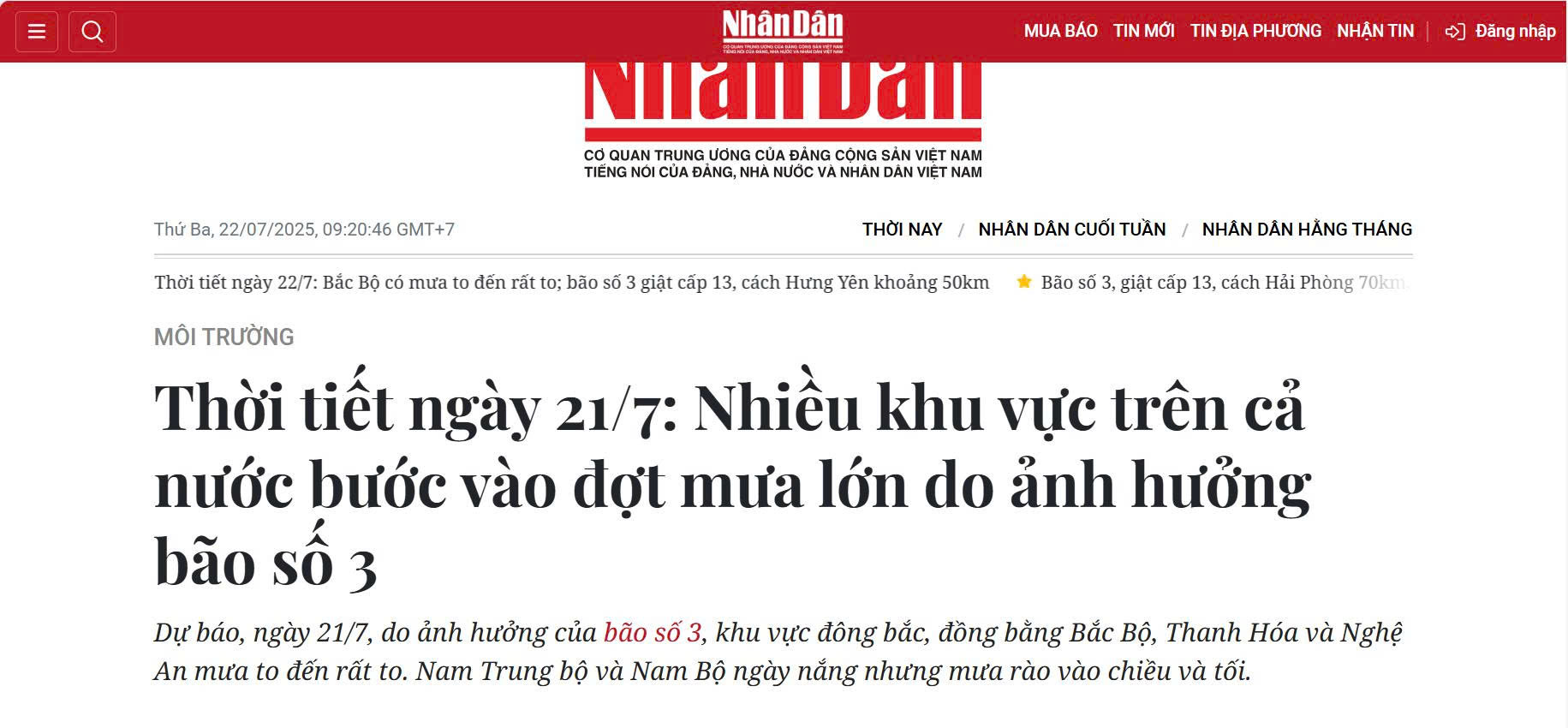 - Dự báo: Từ ngày 21/07/ khu vực phía bắc sẽ chịu ảnh hưởng của bão số 3 (Wipha) gây ra mưa to đến rất to và dông. Gió tây bắc cấp 2-3, sau tăng lên cấp 4-5. Trong mưa dông có khả năng xảy ra lốc, sét và gió giật mạnh, sức gió mạnh nhất cấp 9, giật cấp 11. Nhiệt độ thấp nhất từ 23-25 độ C. Nhiệt độ cao nhất từ 27-29 độ C. Bà con chú ý chuẩn bị công tác tránh bão cho đồng ruộng nhằm hạn chế thiệt hại rủi ro do bão gây ra.