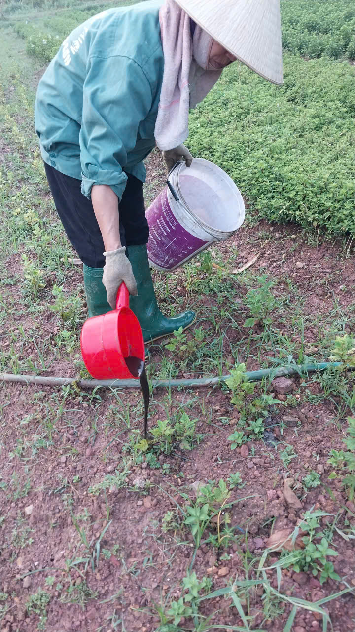 - Tiến hành bón phân cho cây cúc: Dùng phân hữu cơ LUCAVI dạng dung dịch. Cách bón: pha 1 lít phân vào 50 lít nước, sau đó tưới thêm nước cung cấp thêm độ ẩm cho cây dễ hấp thụ. Mỗi gốc 50 - 100ml dung dịch phân đã pha. Tổng dung tích sử dụng hết 35 lít phân đậm đặc.
