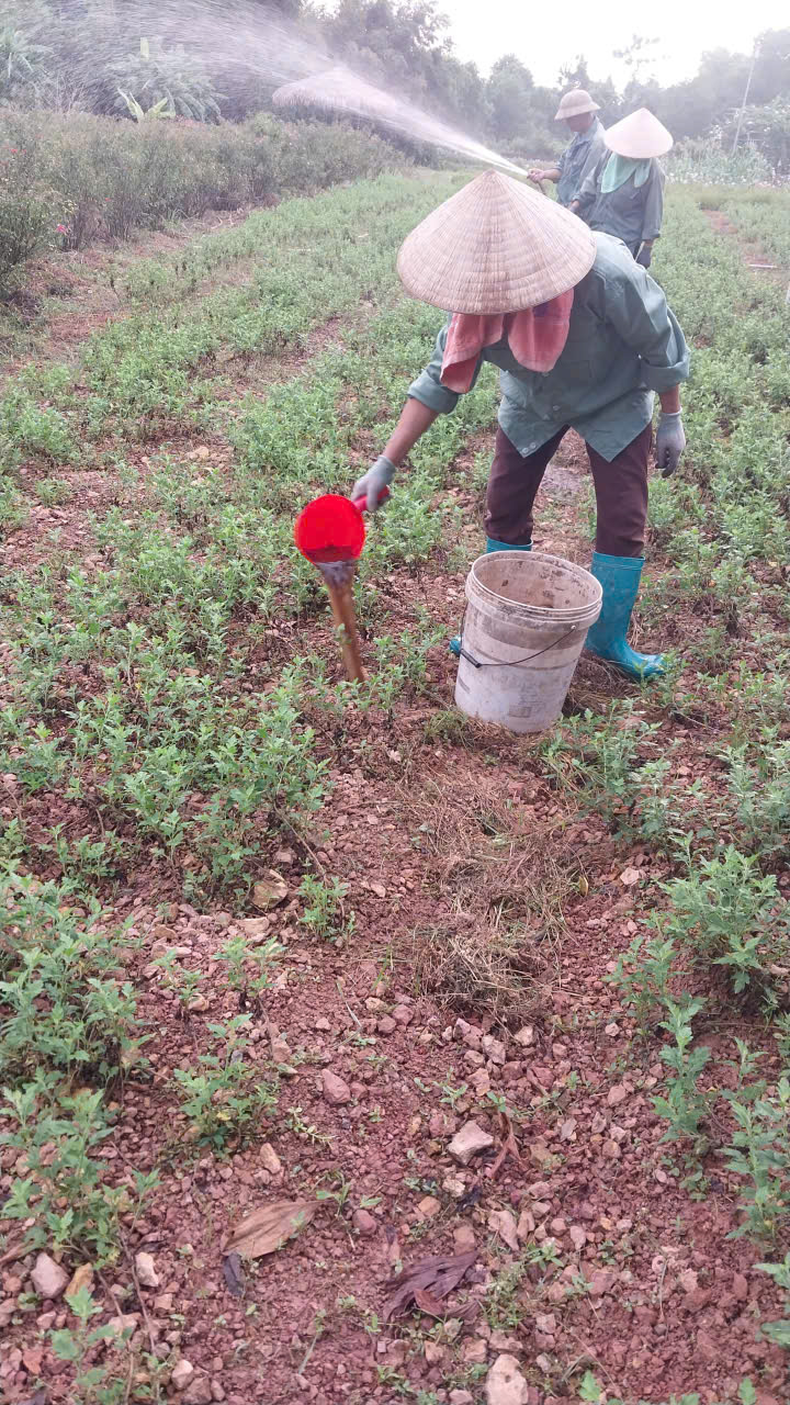 - Tiến hành bón thúc cho cây bạch cúc chi, sử dụng phân Lucavi dạng dung dịch. Cách bón: tưới trực tiếp bằng dung dịch đậm đặc quanh gốc cây, mỗi khóm cây 30 - 50ml sau đó tưới nước bằng hệ thống tưới thủ công. Tổng dung tích phân sử dụng: 30 lít