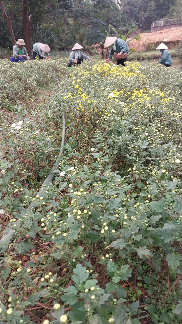 - Bắt đầu khoảng thời gian thu hoạch hoa cúc. Tiến hành thu hoạch hoa cúc đầu mùa vụ. Tổng khối lượng thu lần 1 đạt 7.5Kg. Sau khi sấy được 1Kg hoa cúc khô.