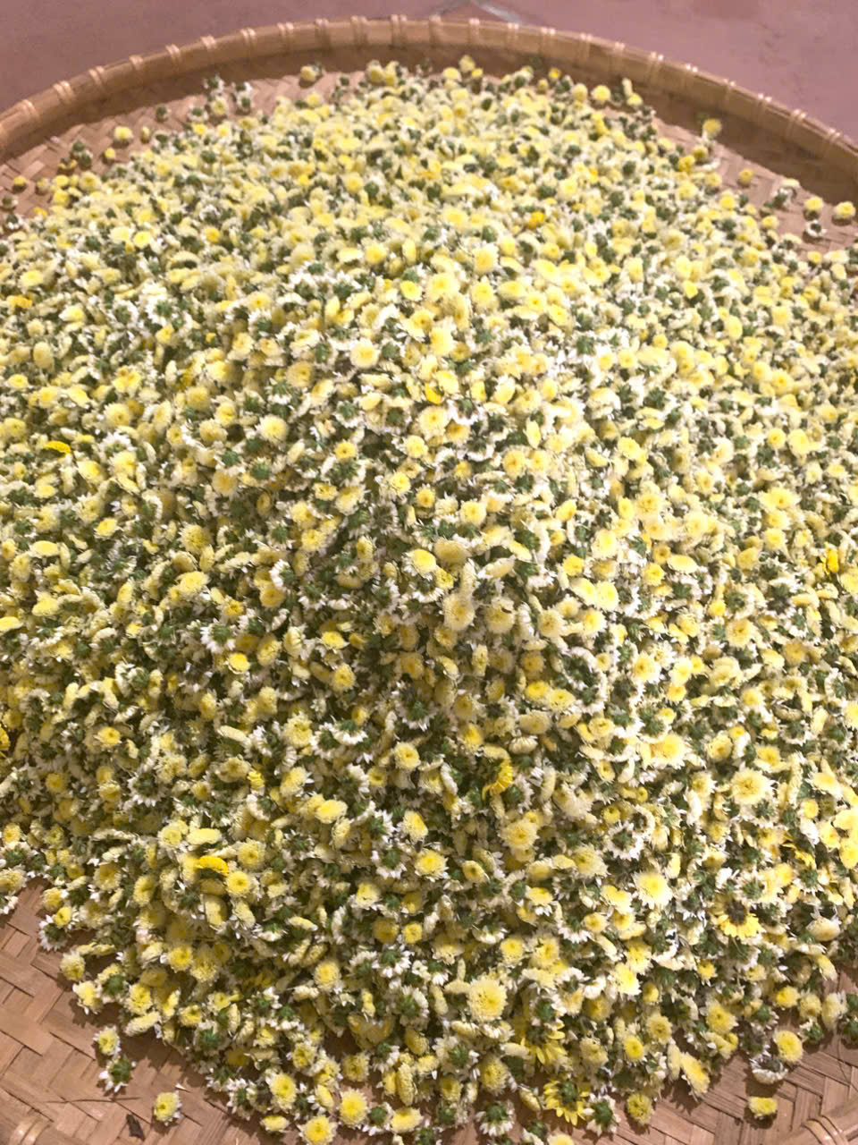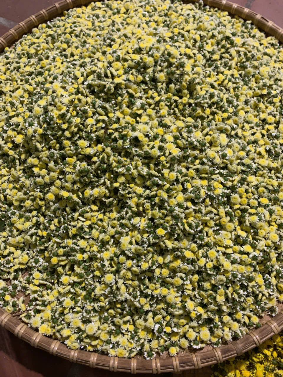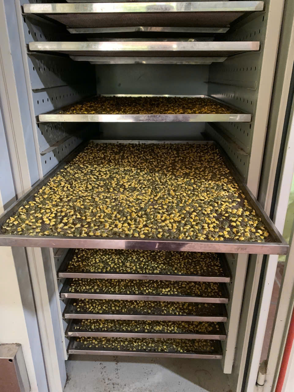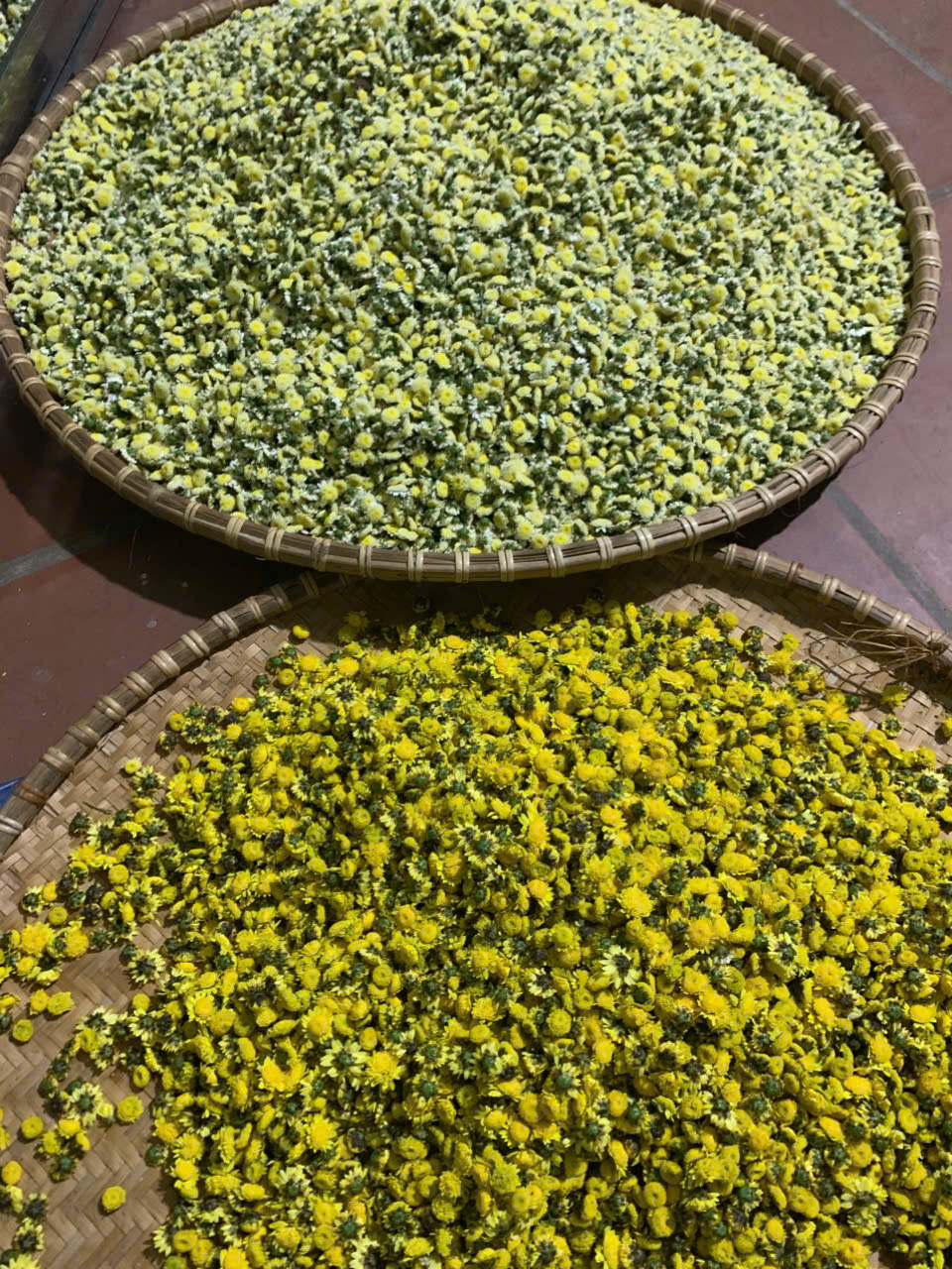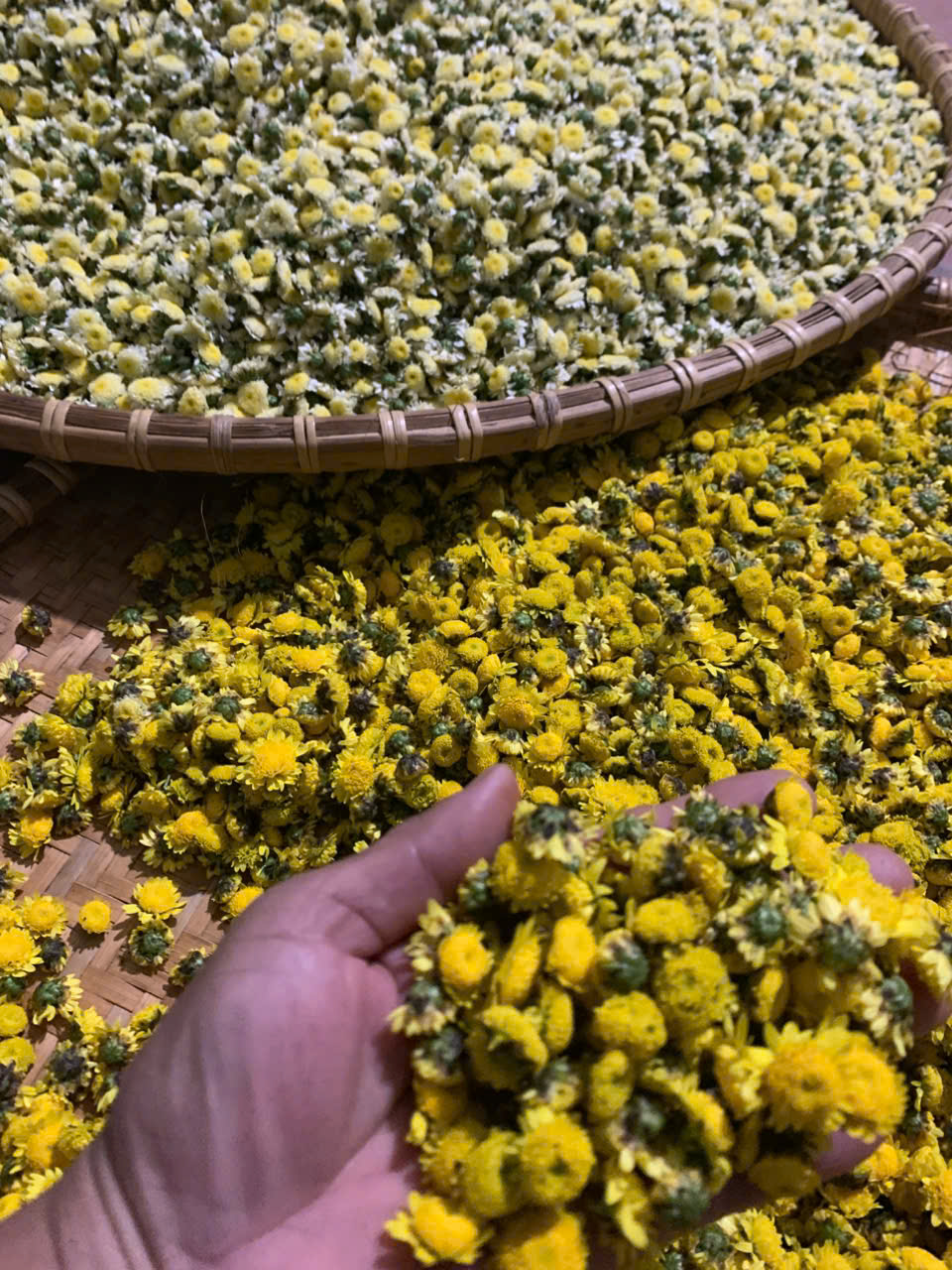 - Hoa cúc sau khi hái, được phơi ráo rồi đem sấy trong lò sấy để đảm bảo được màu sắc, hương vị, và dược tính nguyên vẹn.