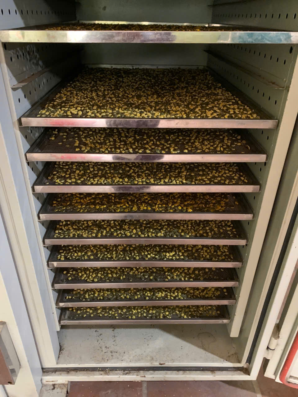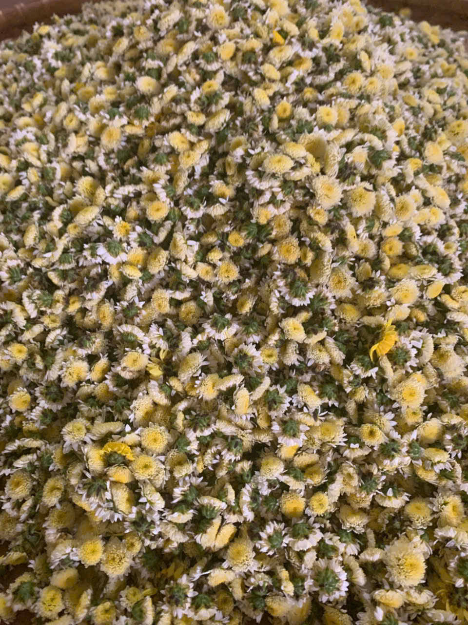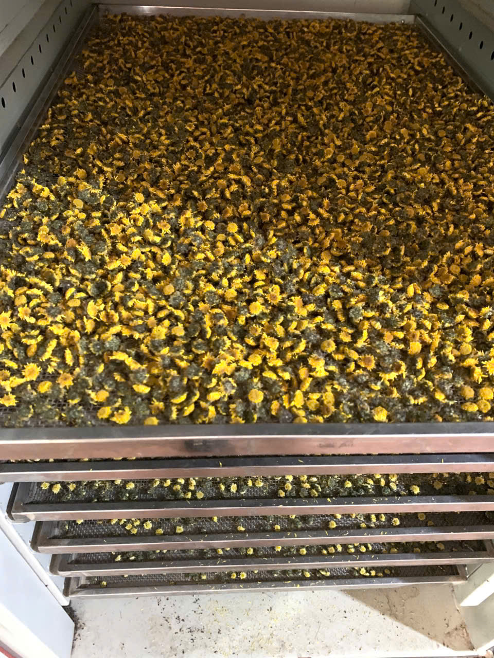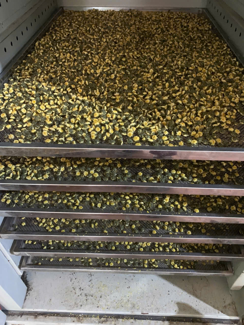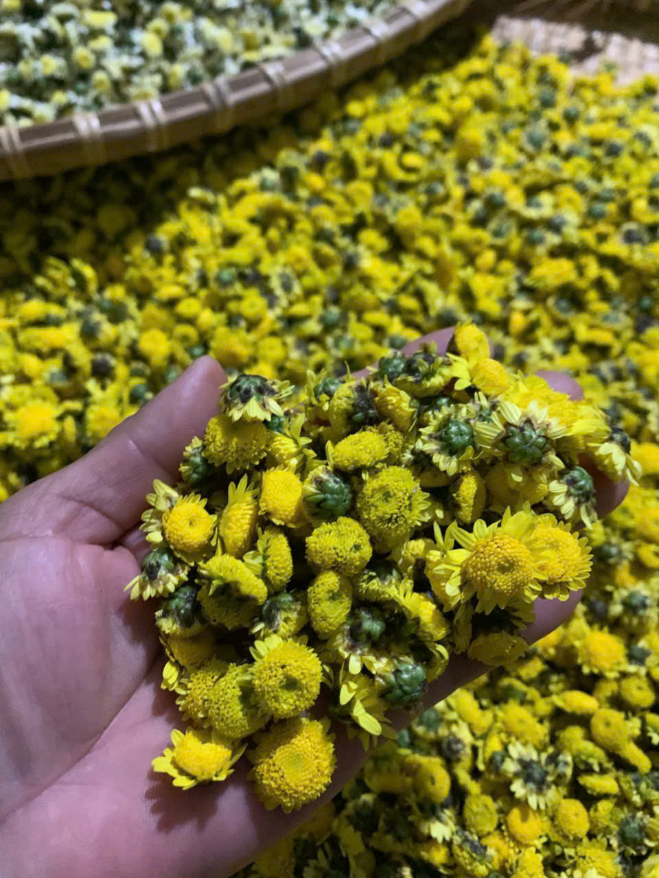 - Hoa cúc sau khi hái, được phơi ráo rồi đem sấy trong lò sấy để đảm bảo được màu sắc, hương vị, và dược tính nguyên vẹn.