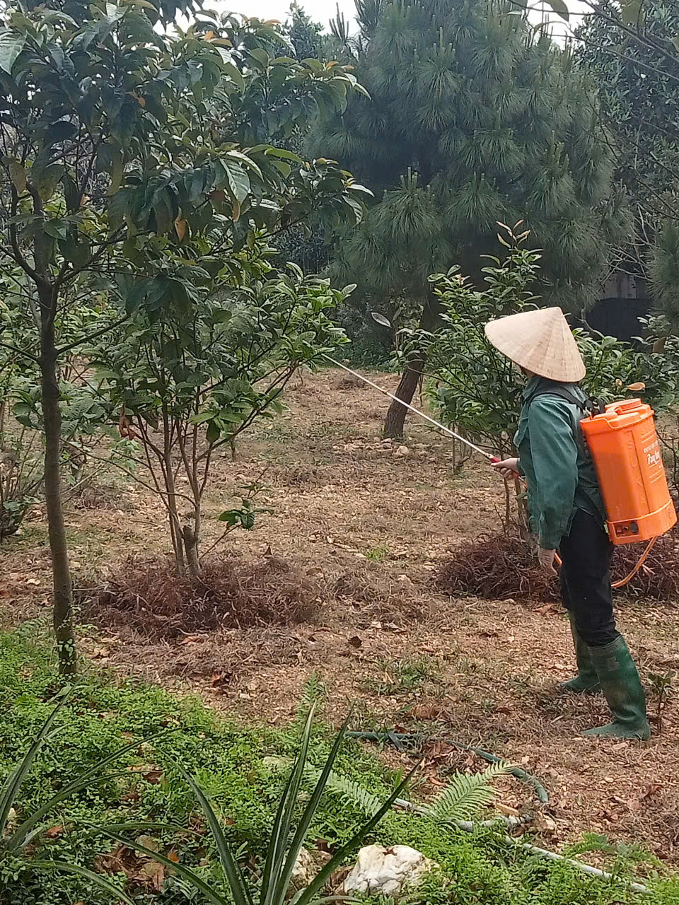 | 6 | Bảo vệ thực vật - Tiến hành phun chế phẩm sinh học trừ sâu thảo mộc kết hợp Anisaf 01, 02 và 03. Cách dùng: pha tỉ lệ 80ml mỗi loại chế phẩm pha chung với bình 20 lít nước, tiến hành pha và phun cho toàn bộ vườn. Tổng 5 bình phun. |