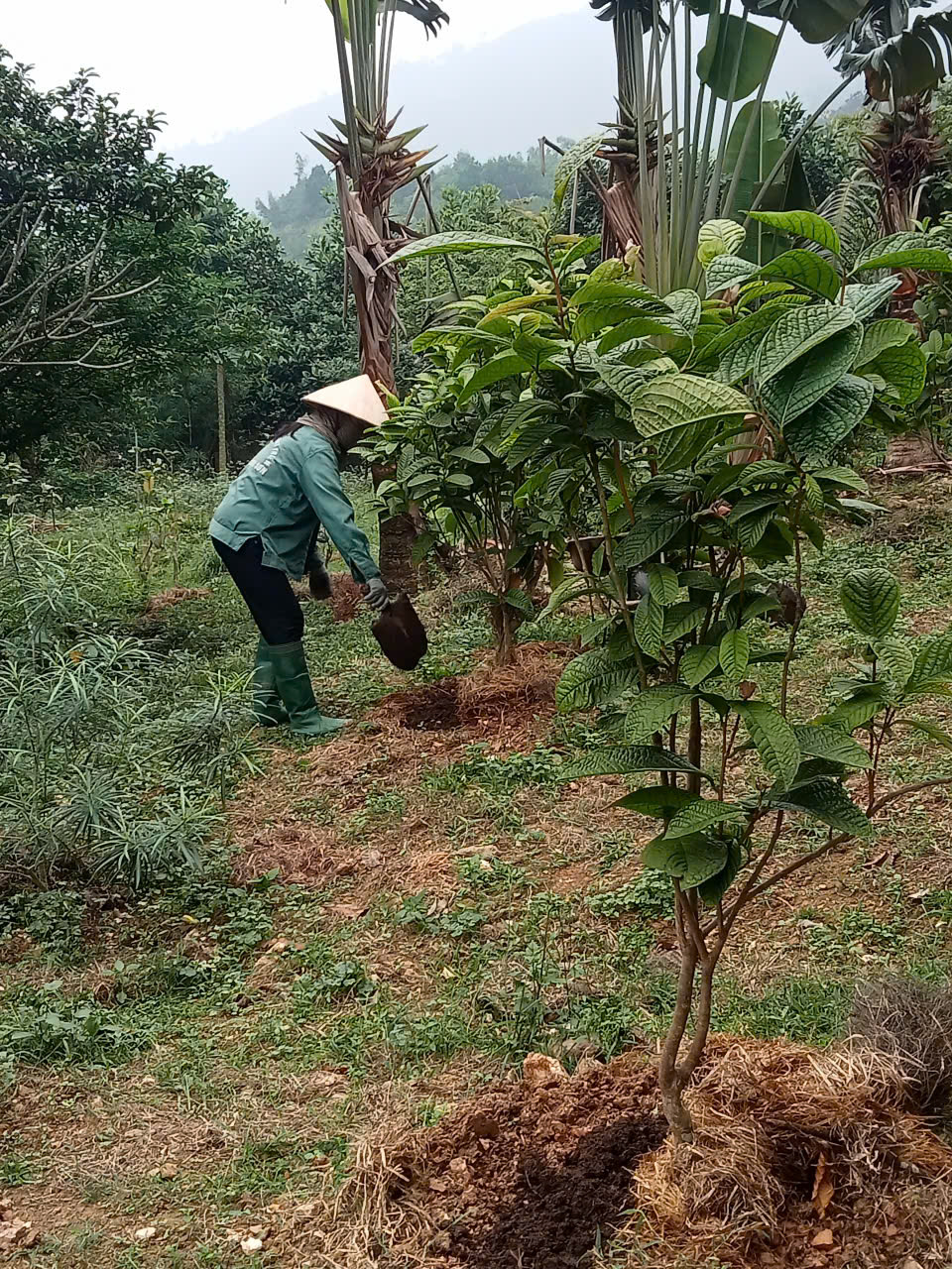 | 7 | Bón Thúc - Tiến hành bón phân cho một số khu vực cây Trà Hoa Vàng phía trên cùng. Loại phân được sử dụng là phân chuồng ủ hoai mục. Lượng dùng: Mỗi gốc 1 - 1,5 kg phân, tùy độ lớn của cây. Cách bón: Đào rãnh hình vành quanh gốc cây theo đường kính tán lá (cách gốc 20cm). Bón phân xong lấp đất lại. |