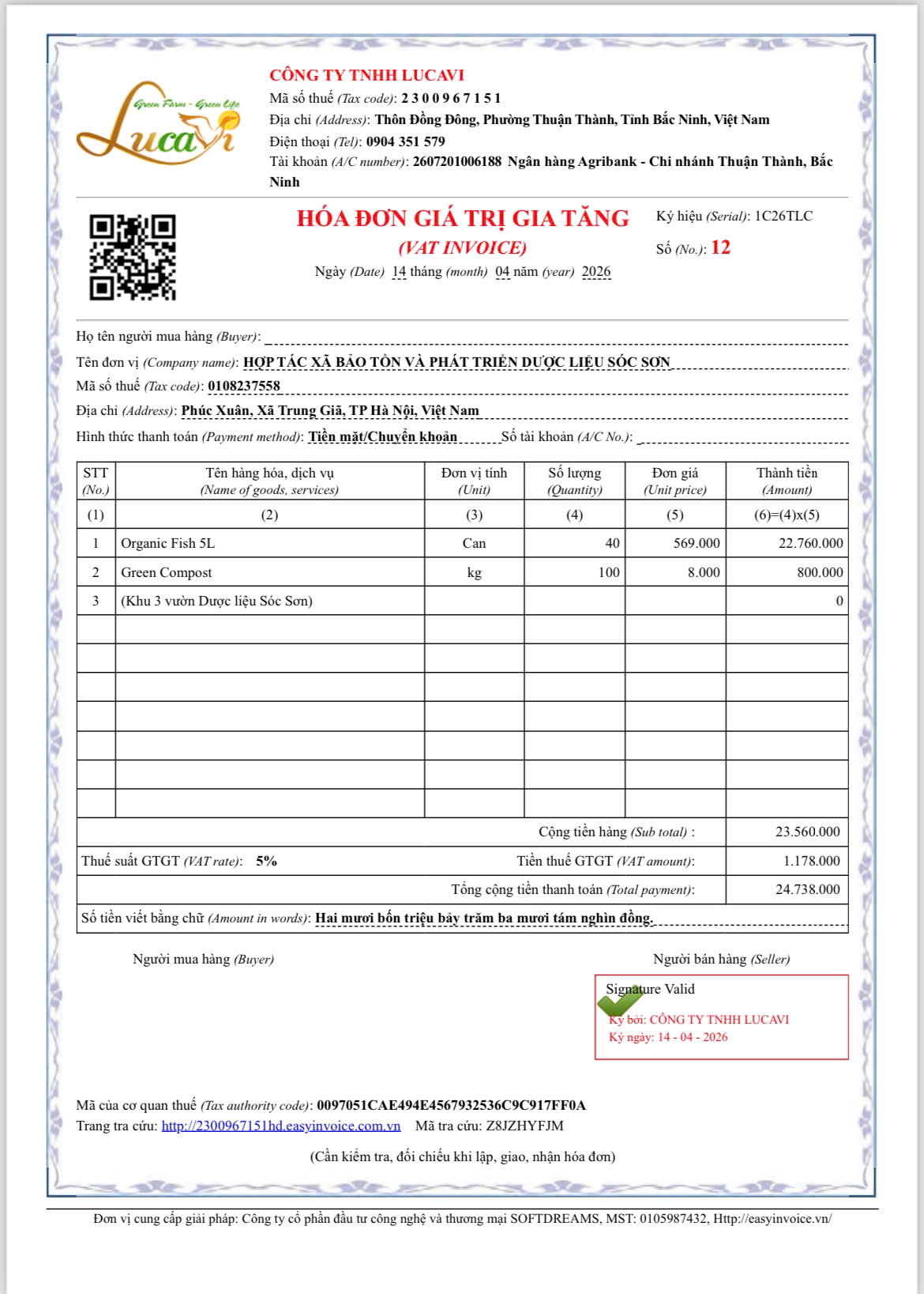 | 15 | Phân hữu cơ - Nhập kho phân bón hữu cơ Lucavi. Khu 3 nhập kho 5 thùng phân Organic Fish (Thùng 4 chai 5L) tổng 100 Lít và 3 thùng Organic Fish kích nụ (Thùng 4 chai 5L) tổng 60 Lít. |