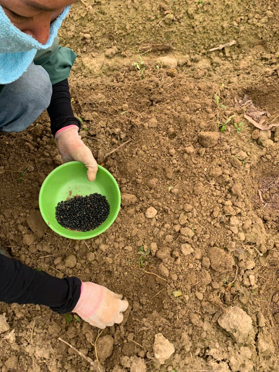 - Tiến hành gieo trồng: Lượng hạt giống cần cho 1 sào từ 1,5 - 2 kg. Gieo từ 2 - 3 hạt trên 1 hốc, mỗi hốc cách nhau 25 cm, hàng cách hàng 40 cm, bỏ hạt vào hố và lấp một lớp đất mỏng vừa phải phủ lên trên.