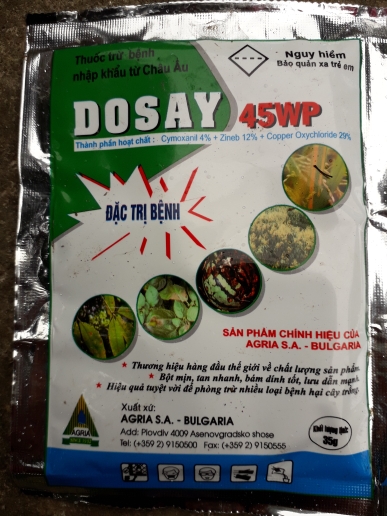 | 6 | Phòng trừ bệnh - Dosay 45WP. Liều lượng: 35-40g/bình 16 lít. Phun phòng trừ bệnh thán thư |