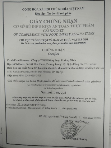 | 15-03-2021 12:03:00 | Chứng chận tiêu chuẩn | Giấy chứng nhận an toàn veek sinh thực phẩm | Hoàn thành | |