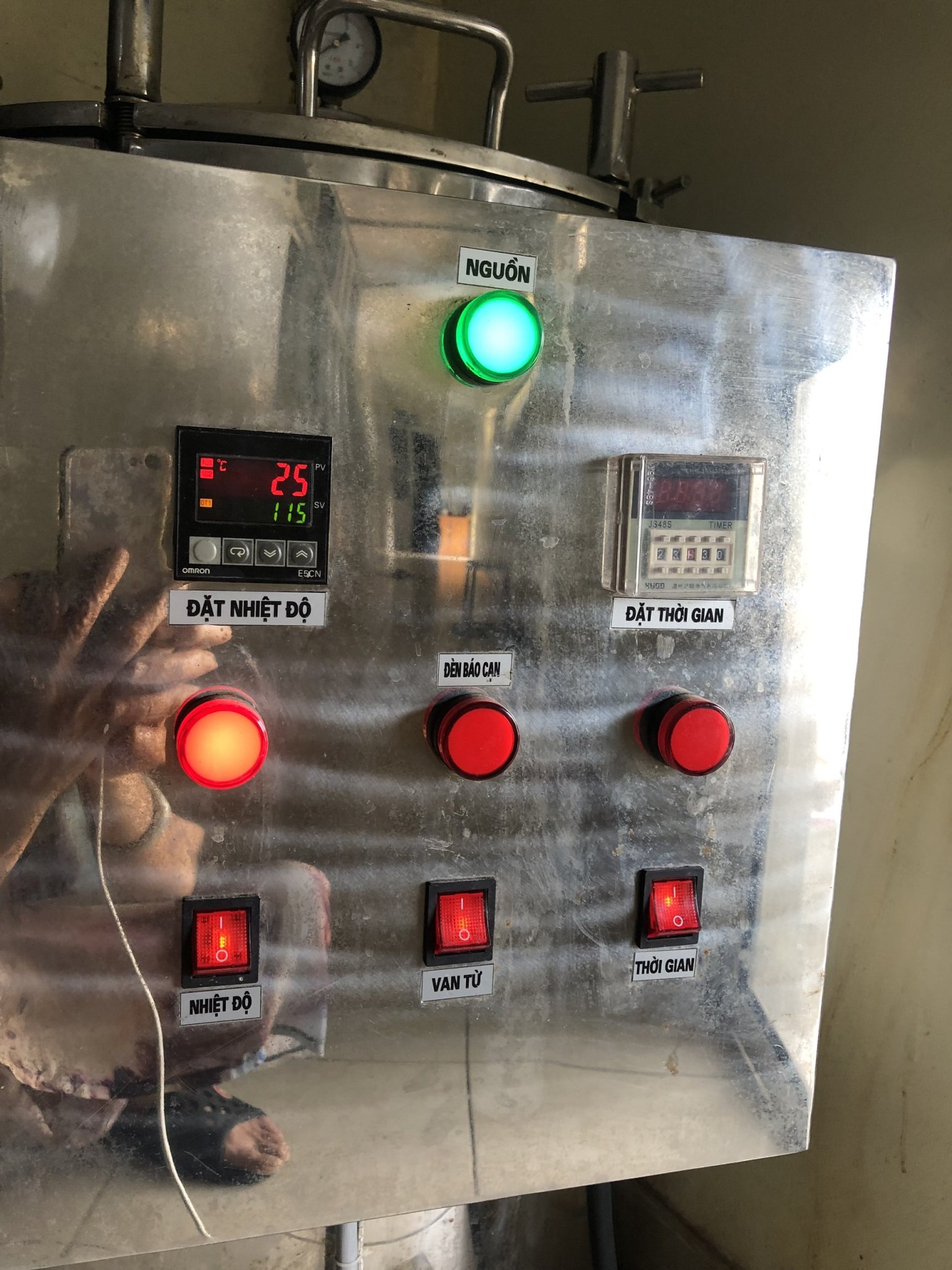 | 02-06-2022 12:06:00 | Phối chế nguyên liệu công đoạn 1 | Cho đậu tương vào nồi tiệt trùng và hông lên cho chín | Hoàn thành | |