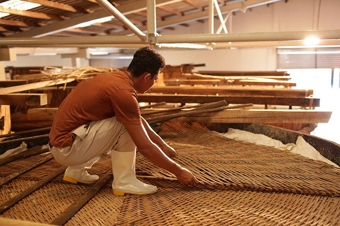 | 16-03-2018 12:03:00 | Phối chế nguyên liệu công đoạn 2 | Ủ chượp: - Vệ sinh thùng và đắp lù lọc cho thùng chứa, mở nút lù. - Cá muối được bốc dỡ từ hầm tàu đổ vào thùng chứa, phủ lên bề mặt trên cùng lớp muối dày khoảng 3-5 cm. - Sau khoảng 7 (bảy) ngày, rút khô nước bổi, phủ lên bề mặt chượp lớp đệm làm bằng bàng, gài nén chặt bằng thanh gỗ, đóng nút lù. - Đổ nước bổi lên thùng cho đến khi ngập thanh gỗ chắn. - Thời gian ủ chượp đến khi chượp chín trung bình từ 12 tháng đến 15 tháng trong điều kiện có mái che, ở điều kiện tự nhiên của môi trường. | Hoàn thành | |