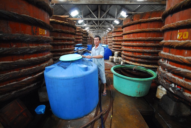| 20-03-2020 12:03:00 | Phối chế nguyên liệu công đoạn 3 | Kéo rút nước mắm: - Kéo rút nước mắm cốt: Khi chượp chín, mở nút lù để nước mắm chảy ra từ từ; nước mắm được đổ lại thùng chượp và kéo rút nhiều lần cho đến khi nước mắm trong được gọi là nước mắm cốt; chuyển nước mắm cốt ra thùng chứa thành phẩm. - Kéo rút nước mắm long: Hòa tan nước muối vào nước sạch đến bão hòa, bơm nước muối tuần hoàn qua các thùng chượp có chất lượng từ thấp đến cao cho đến khi nước mắm trong, gọi là nước mắm long 1; quá trình này được lặp lại để thu nước mắm long 2, nước mắm long 3; chuyển từng loại nước mắm long sang thùng chứa riêng. |