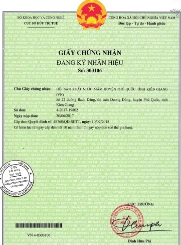 | 30-03-2023 12:03:00 | Giấy chứng nhận | Giấy chứng nhận Chỉ dẫn địa lý EU và Đăng ký nhãn hiệu Nước mắm Phú Quốc | Hoàn thành | |