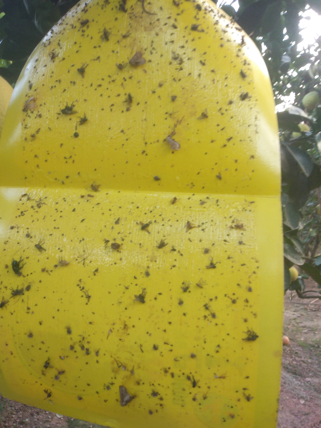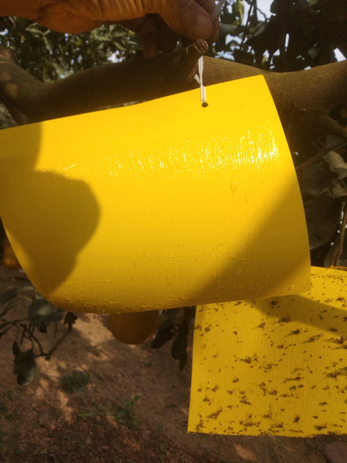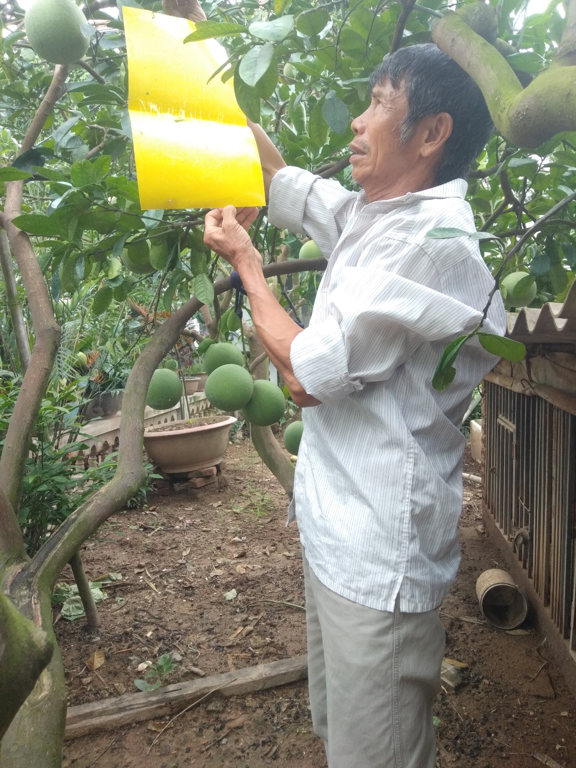03-08-2023 08:08:44 Phòng trừ sâu Treo bẫy dính ruồi vàng quanh vườn. Đây là biện pháp tránh sử dụng các loại thuốc hóa học trong phong trừ sâu bệnh hại cho vườn bưởi hữu cơ. Hoàn thành