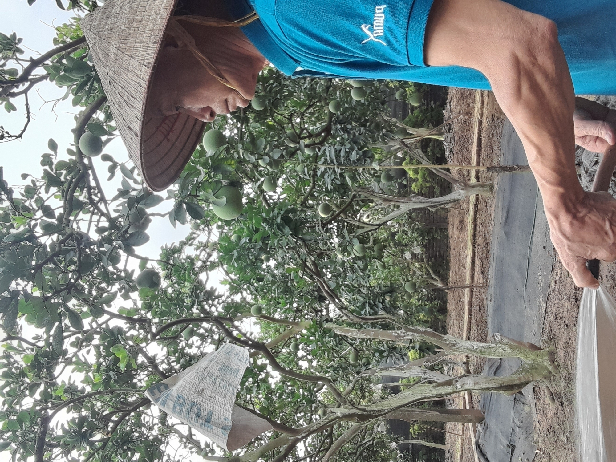 | 21-07-2023 09:07:18 | Thao tác kỹ thuật | Bọc trái để tránh cho trái bị nắng làm cháy giám thối trái, tránh ruồi vàng đốt trái sẽ làm trái thối. Trước khi bao nên cắt tỉa những dé hoa còn xót lại không thể kết trái ở xung quanh trái bưởi. | Hoàn thành | |
