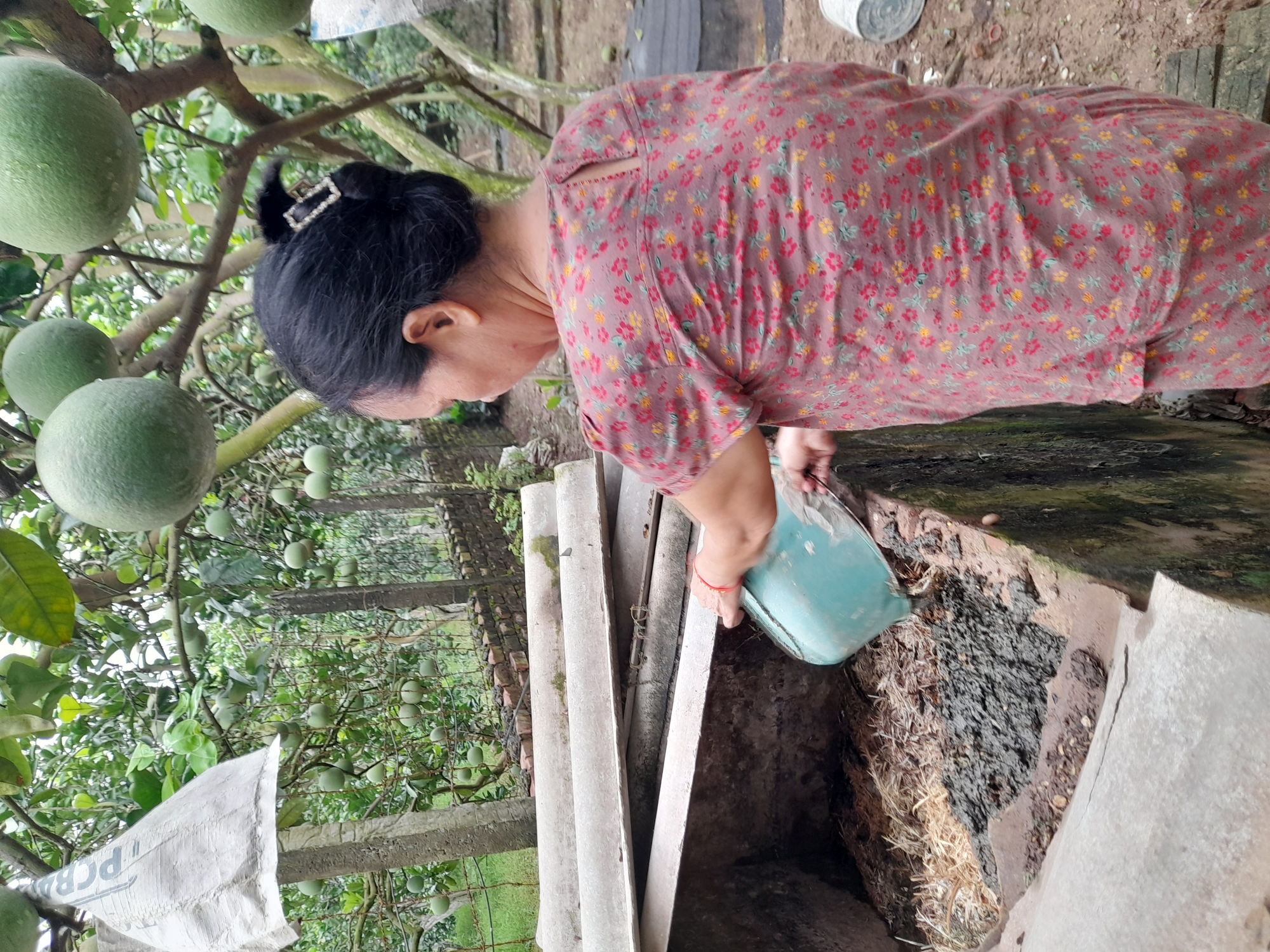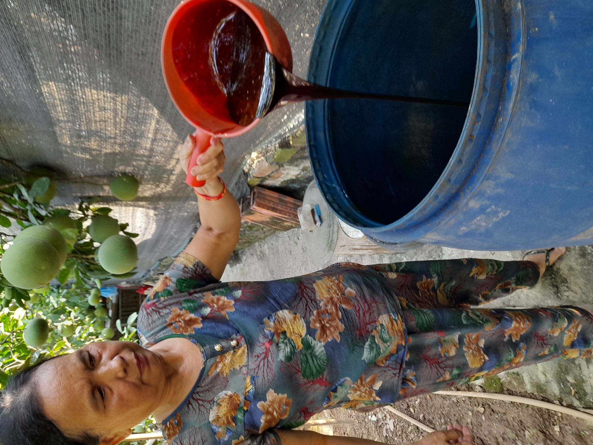 | 21-08-2023 08:08:58 | Phân hữu cơ | Ủ phân gà, rác thực phẩm bỏ trộn với tưới chế phẩm TRICHODERMA làm phân hũu cơ,để cuối năm thu hoạch trái xong bón cho cây. Phân gà sau khi được xử lý với chế phẩm EM (1 lít rỉ mật đường + 5 kg cám gạo + 1 kg EM cho 3 - 4 tấn phân gà). Hỗn hợp sau khi được xử lý sẽ trộn cùng TRICHODERMA để ủ khoảng 1 tháng với mỗi tuần đảo trộn 1 lần. Cuối cùng để nguội hỗn hợp và mang rải bón cho cây. | Hoàn thành | |