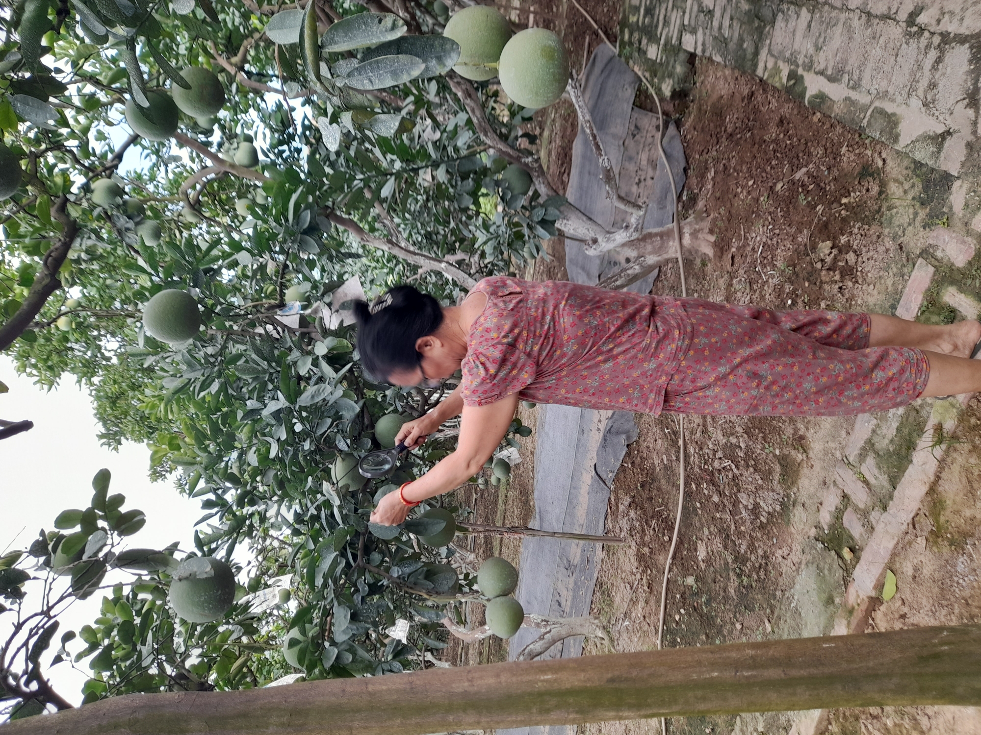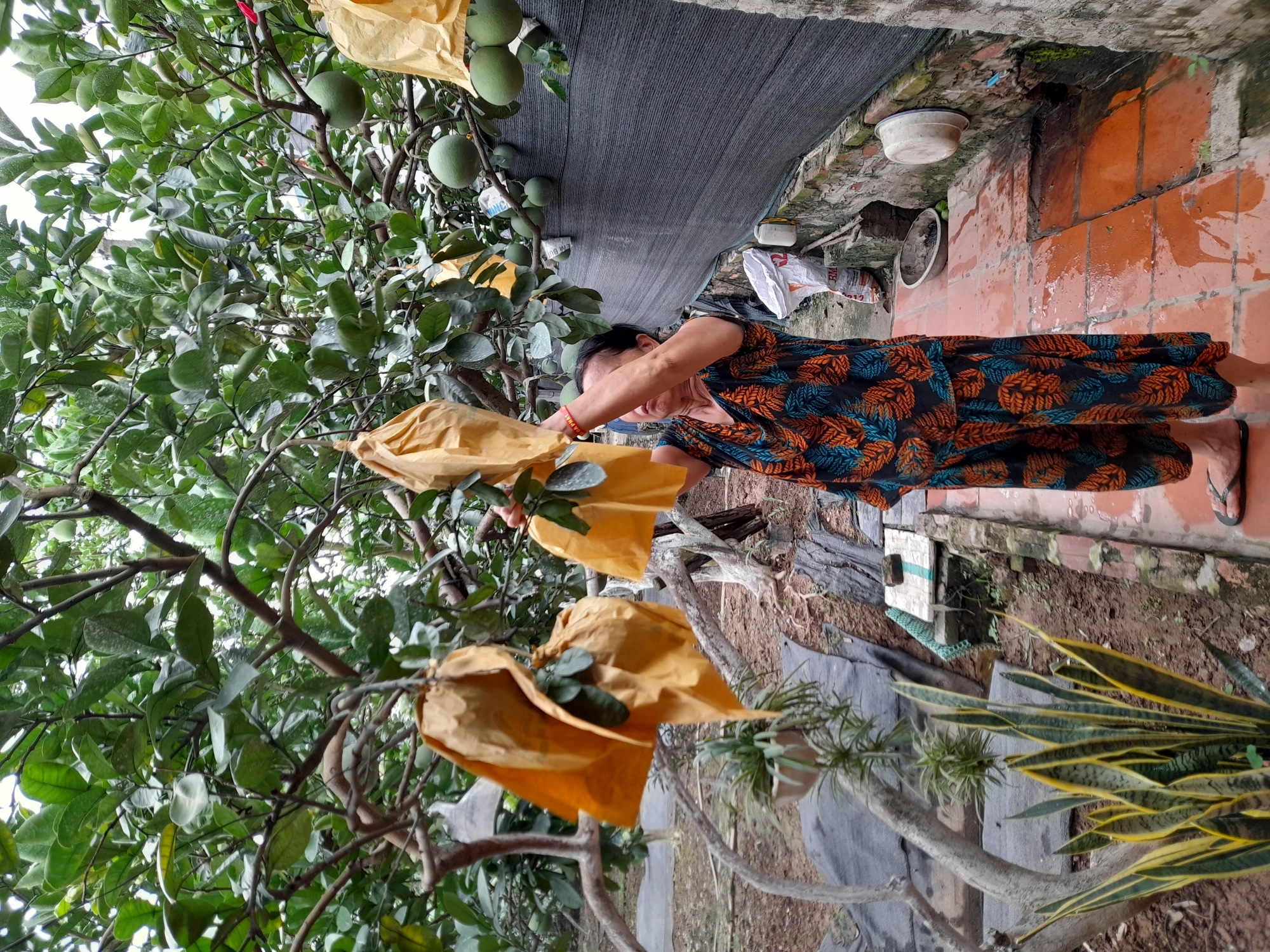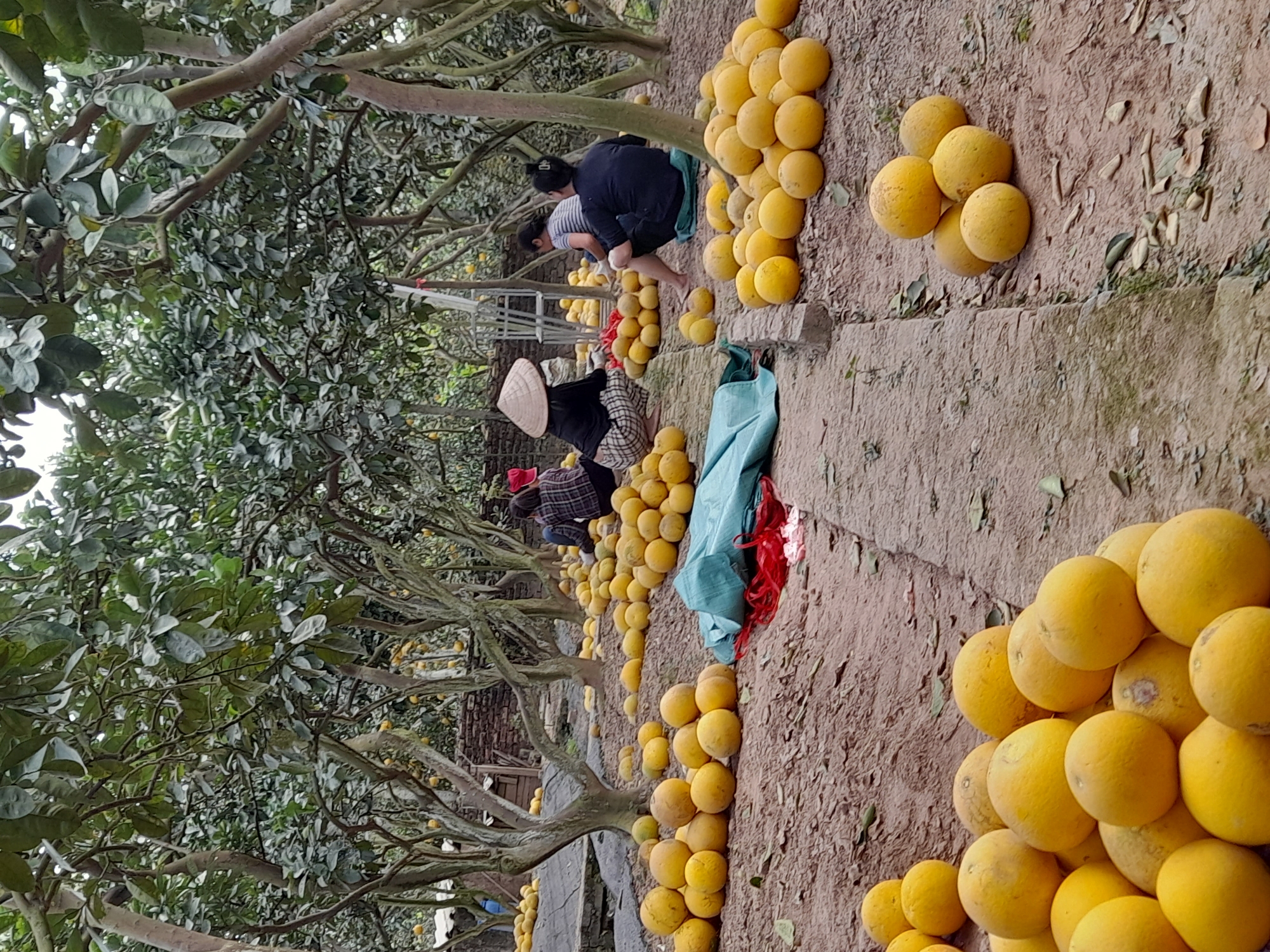 | 31-12-2023 09:12:11 | Thu hoạch | Bưởi đã chín bữa nay tranh thủ thu hoạch .ko thời tiết thanh đổi mưa sẽ làm ảnh hưởng đến chất lượng. Dự tính sản lượng đạt 1,5 tấn trên sào bắc bộ(360m2)trị giá khoảng 50 triệu đồng | Hoàn thành |