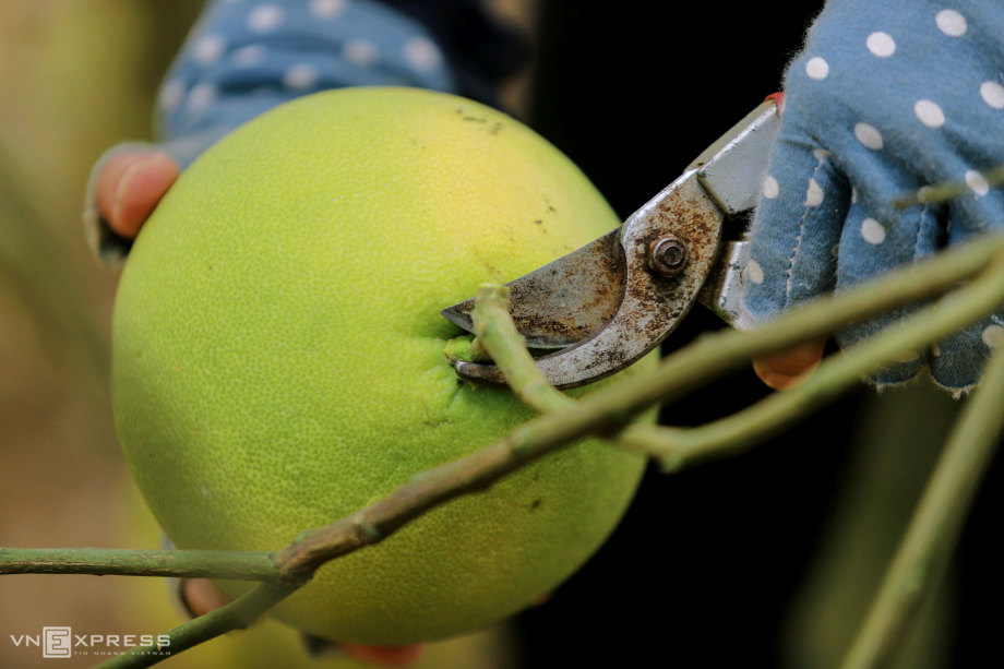 20-09-2020 12:09:00 Thu hoạch cơ giới Thời điểm thích hợp để thu hoạch bưởi là vào buổi sáng hoặc buổi chiều mát, vì như vậy thì quả khi hái xuống sẽ không bị héo. Nên thu hoạch khi bưởi vừa chuyển từ màu xanh sang màu vàng, quả vừa chín tới, da căng bóng. Sử dụng kéo chuyên dụng để cắt quả, không để quả rơi xuống đất làm dập vỏ và múi bên trong quả Hoàn thành