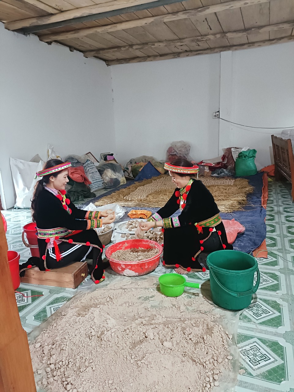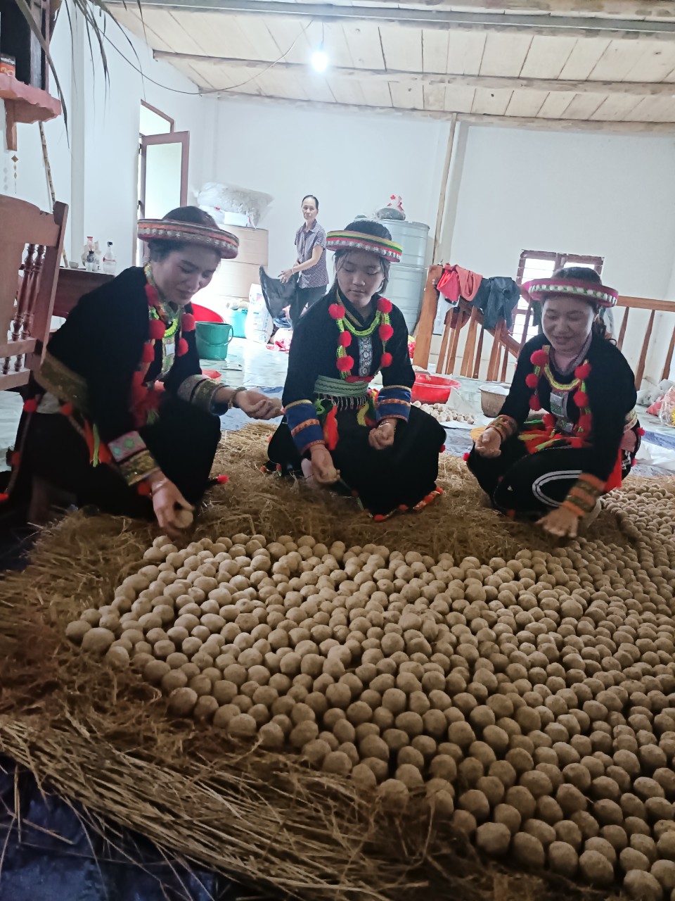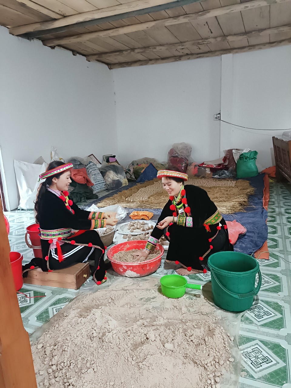 | 14-12-2023 12:12:00 | Phối chế nguyên liệu công đoạn 3 | ủ quả men vào trong rơm , chăn ấm khoảng 2-3 ngày để cho bột lên men. Sau đó đem quả men phơi nơi khô ráo, thoáng khí đến khi quả men khô . Men sau khi đã phơi khô là có thể dùng để nấu rượu ngay được hoặc đem bảo quản để dùng dần. | Hoàn thành | |