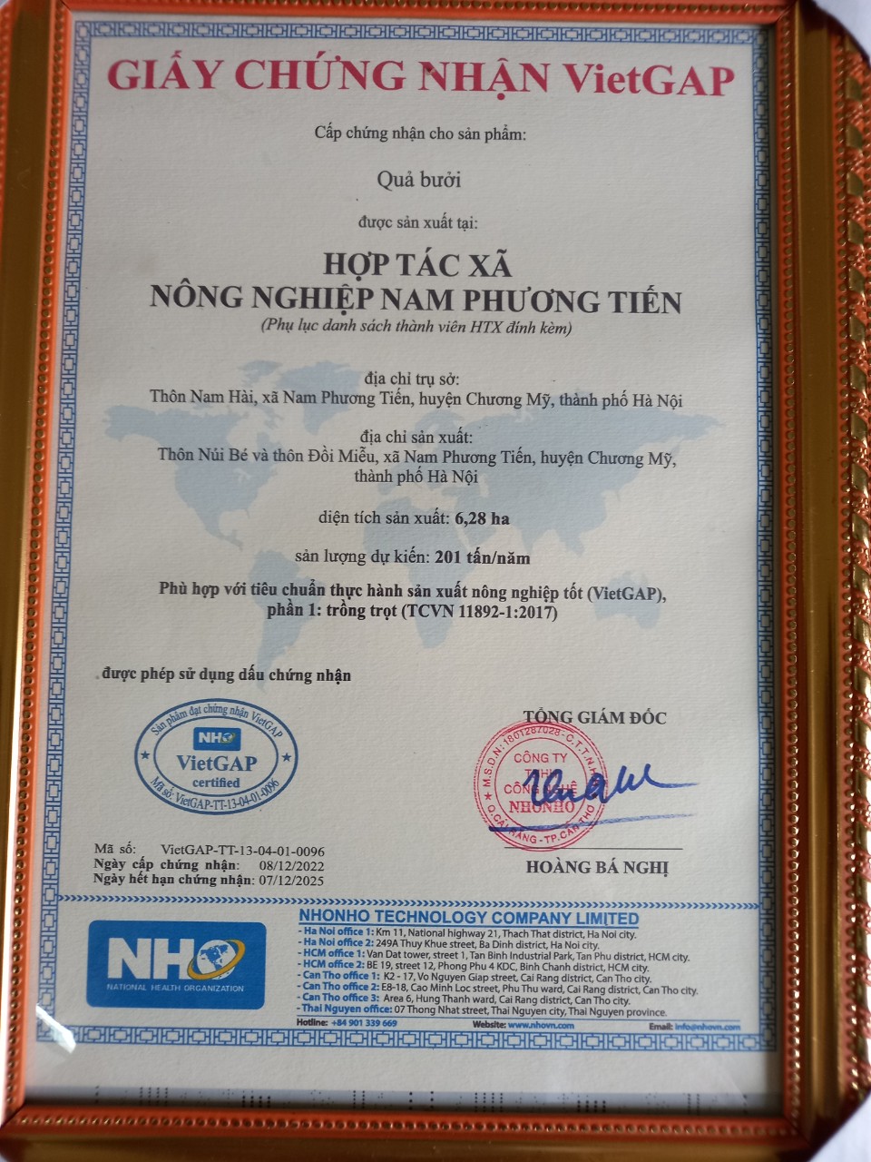 | 08-12-2022 12:12:00 | Chứng chận tiêu chuẩn | Chứng nhận tiêu chuẩn VIETGAP của HTX Nông nghiệp Nam Phương Tiến | Hoàn thành | |