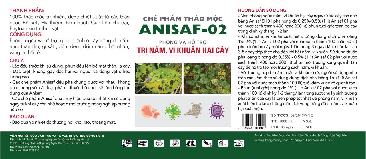 23-10-2023 12:10:00 Bảo vệ thực vật Phun chế phẩm sử dụng thuốc thảo mộc tự pha chế và thuốc sinh học được phép sử dụng Anisaf 01, Anisaf 02 phòng trừ nhện đỏ, sâu hại cây phun lặp lại mỗi tuần. Hoàn thành
