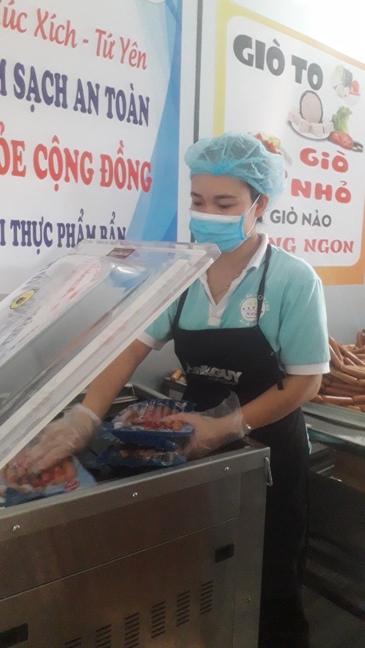 | 05-07-2024 12:07:00 | Đùn xúc xích | B7. Đùn xúc xích Nguyên liệu sau khi xay nhuyễn được đưa vào máy đùn. Đùn xúc xích phải được thực hiện đồng bộ sao cho xúc xích đùn ra có độ đồng đều, không quá lỏng, không quá căng cứng dẫn đến hiện tượng nứt vỏ colagen khi hấp chín. | Hoàn thành | |