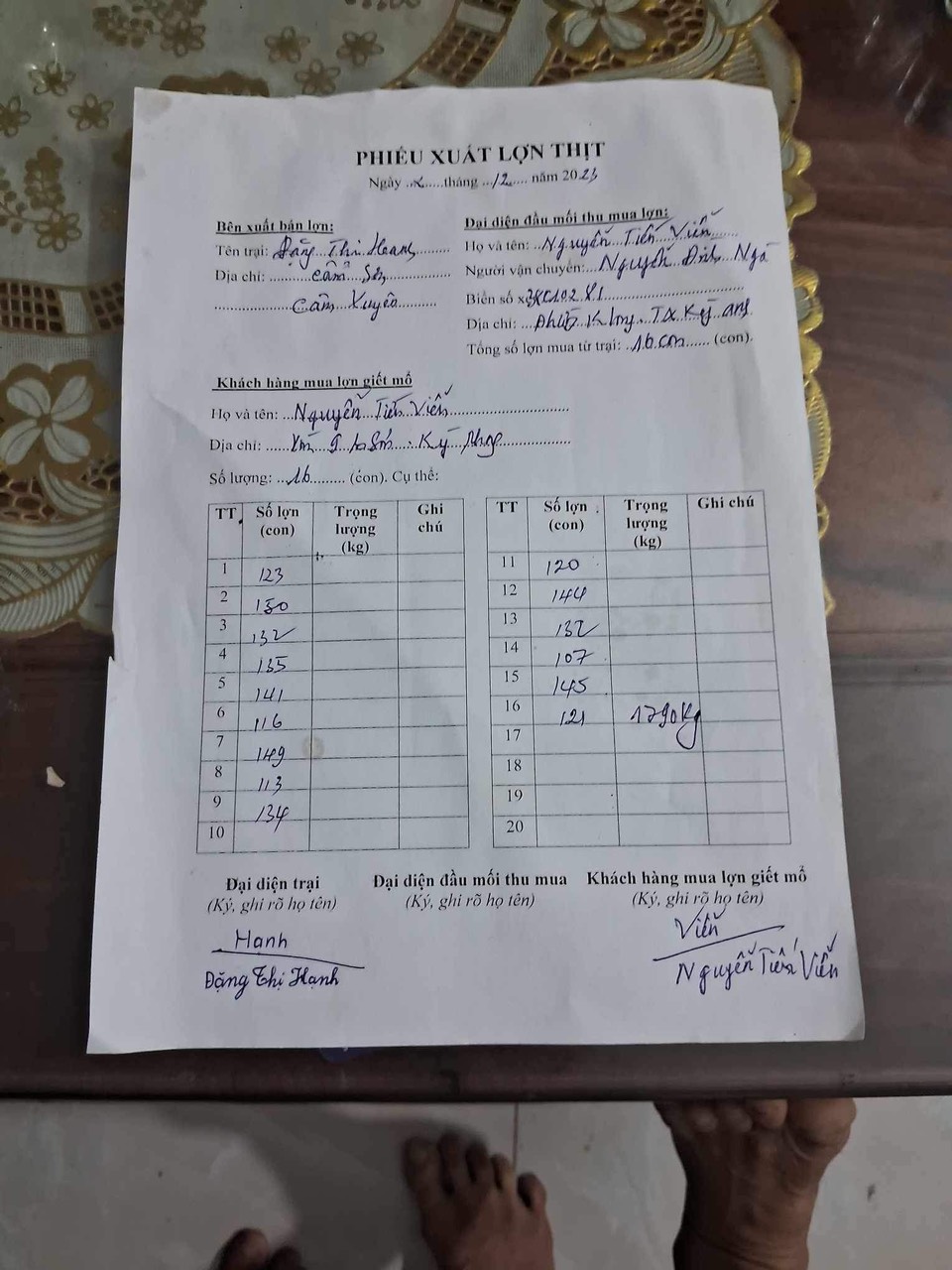| 05-07-2024 12:07:00 | Nhập nguyên liệu | B1. Nhập nguyên liệu Lấy thịt lợn từ lò mồ Kỳ Bắc. Thịt lợn được lấy tại lò mổ có dấu kiểm định của cơ quan chức năng. Thịt lợn tươi, đảm bảo an toàn vệ sinh thực phẩm | Hoàn thành | |