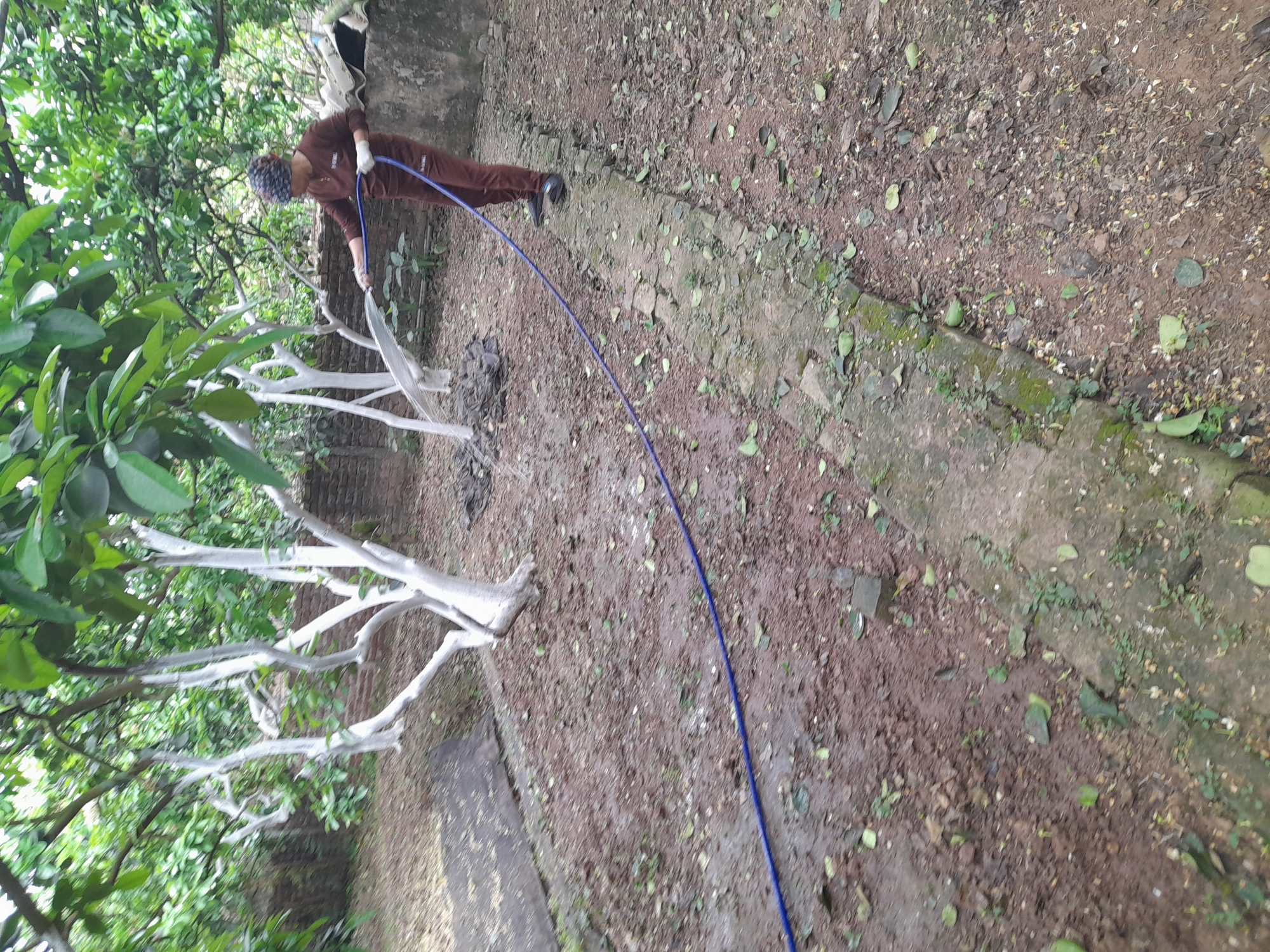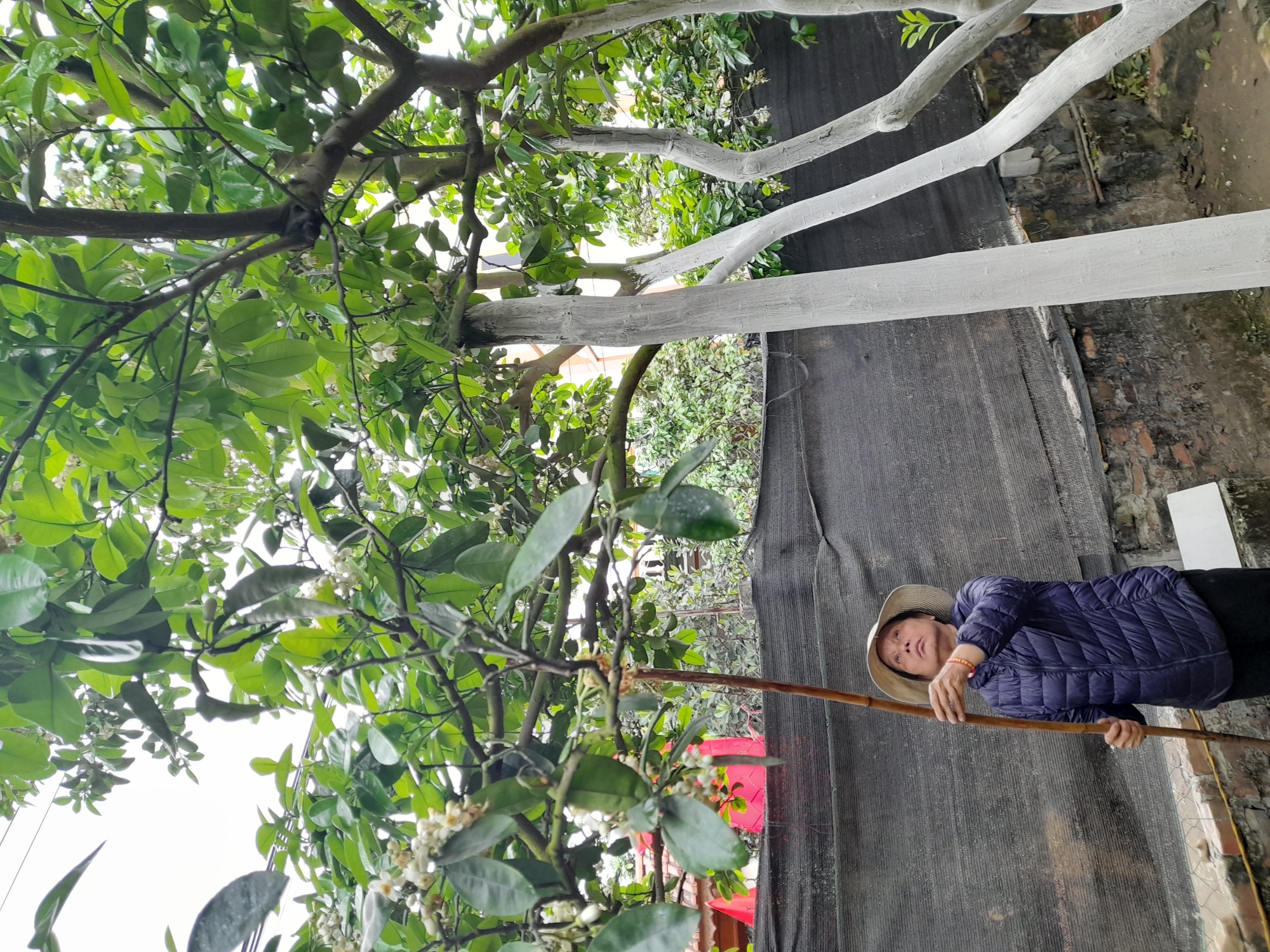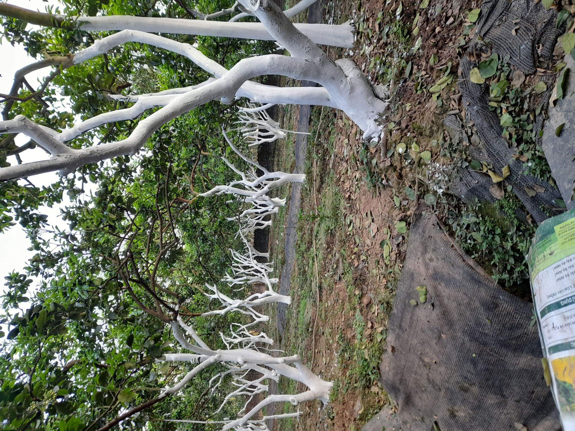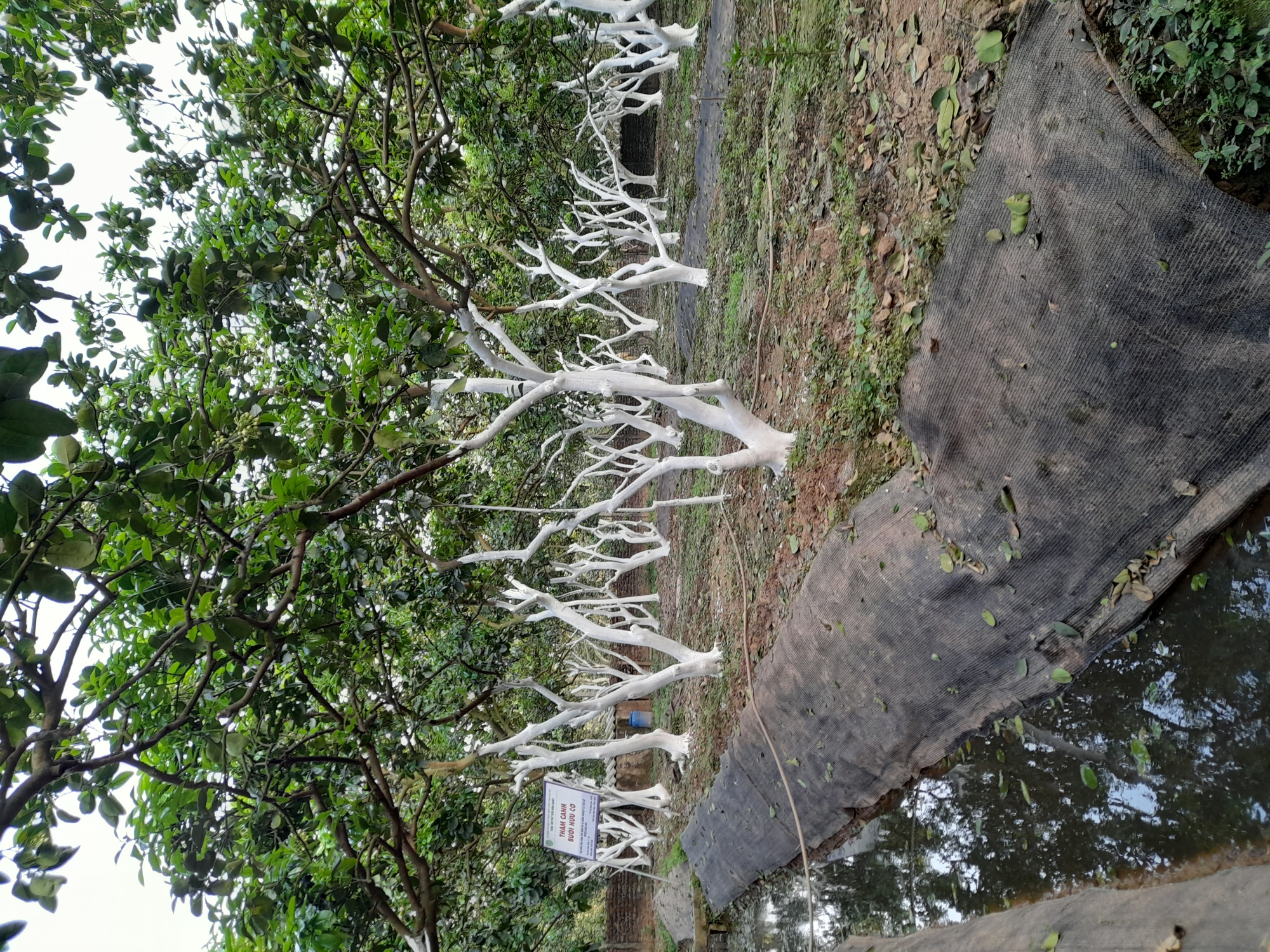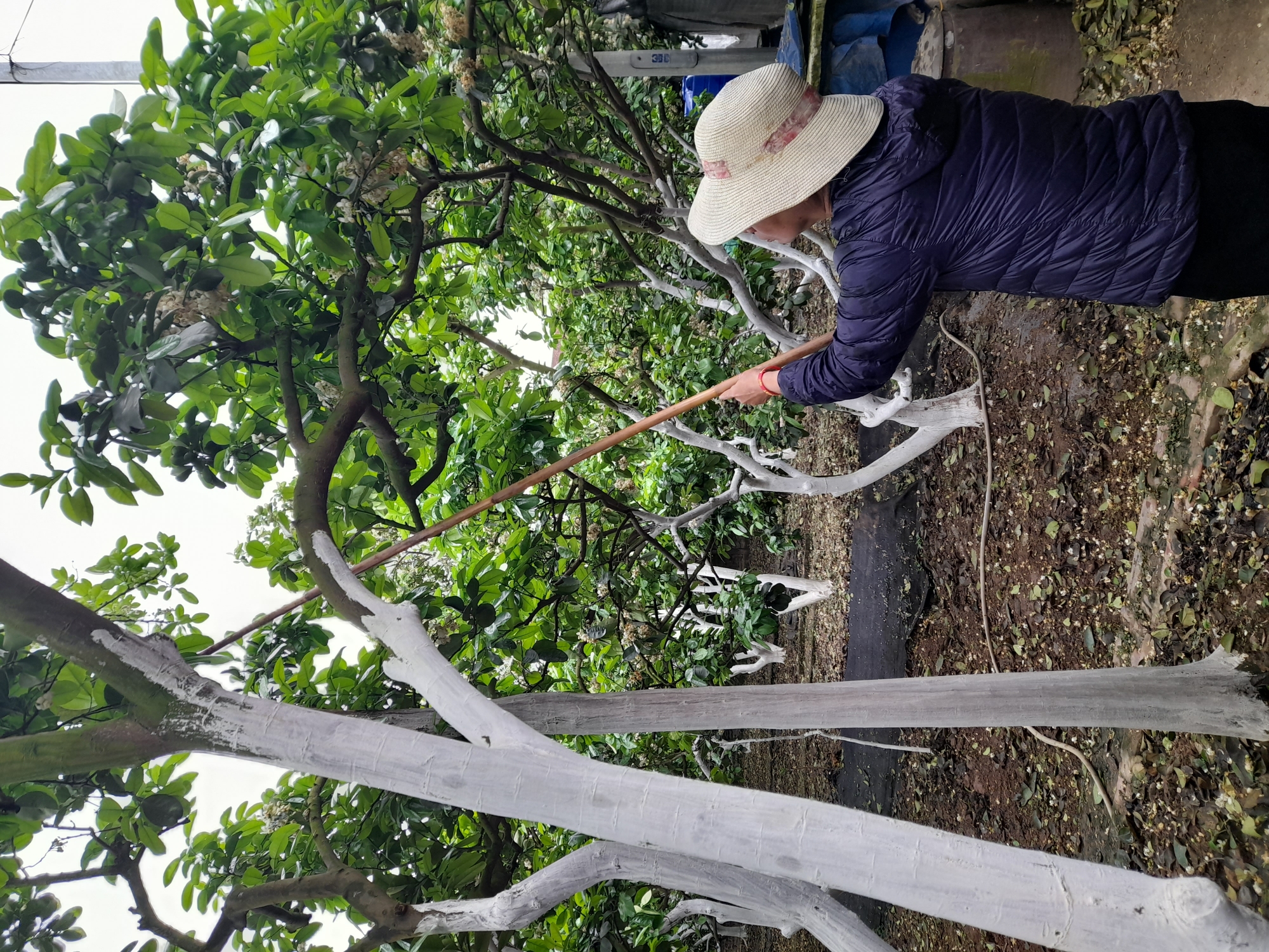 16-02-2024 04:02:47 Phòng trừ sâu Ngày 15 và 16 tháng 2 năm 2024 đã quét vôi hoàn thành cho 50 gốc bưởi và cành bưởi để tránh bị rêu và các loại sâu bệnh bám vào thân ,cành để sinh sản gây bệnh cho cây Hoàn thành